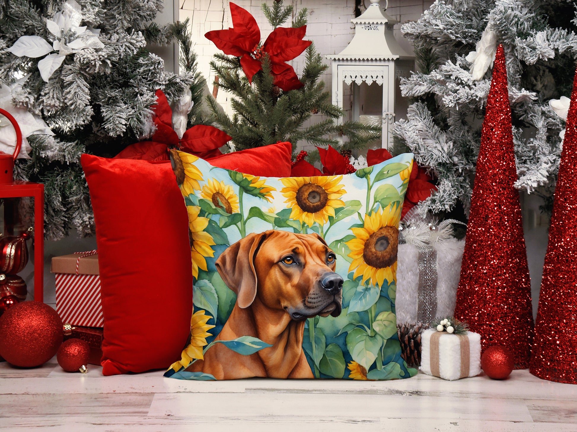 Rhodesian Ridgeback in Sunflowers Throw Pillow