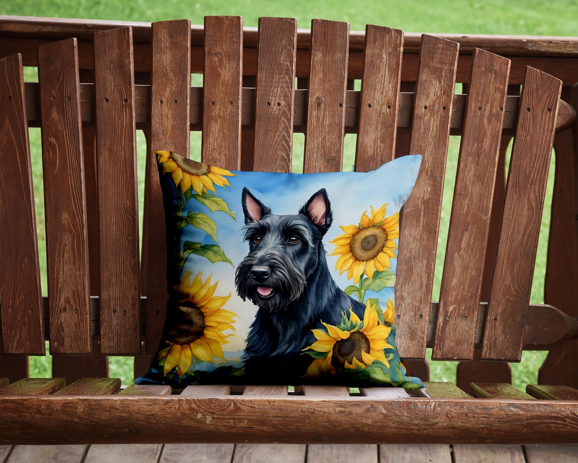 Throw Pillow featuring breed specific Scottish Terrier artwork. Add a touch of vibrancy and comfort to your outdoor seating with Caroline's Treasures Fabric Decorative Pillow. Measuring approximately 14 inches by 14 inches, this outdoor pillow is crafted to elevate the appeal of your patio furniture, infusing it with vivid color and artistic flair. The pillow includes a 100% Polyester Fabric sham filled with a quality pillow form to provide superior comfort. Innovatively made from our brand new material, specifically woven for its water resistance, this pillow is designed for durability. The soft canvas fabric offers versatility in use, fit for your indoor couch or your outdoor patio, porch, or veranda. The fabric is dyed with colorfast dyes built for resilience against weather conditions, ensuring the pillow retains its beauty over time. Constructed by sewing three fabric pieces to create a sham, the polyester insert is then nestled inside to form the pillow, resulting in an overstuffed pillow that maintains its shape. Both the sham and the pillow insert are proudly made in the United States. As the pillows are handcrafted, there may be minor variations in size, further enhancing their unique charm. Experience comfort in style with Caroline's Treasures Fabric Decorative Pillow.