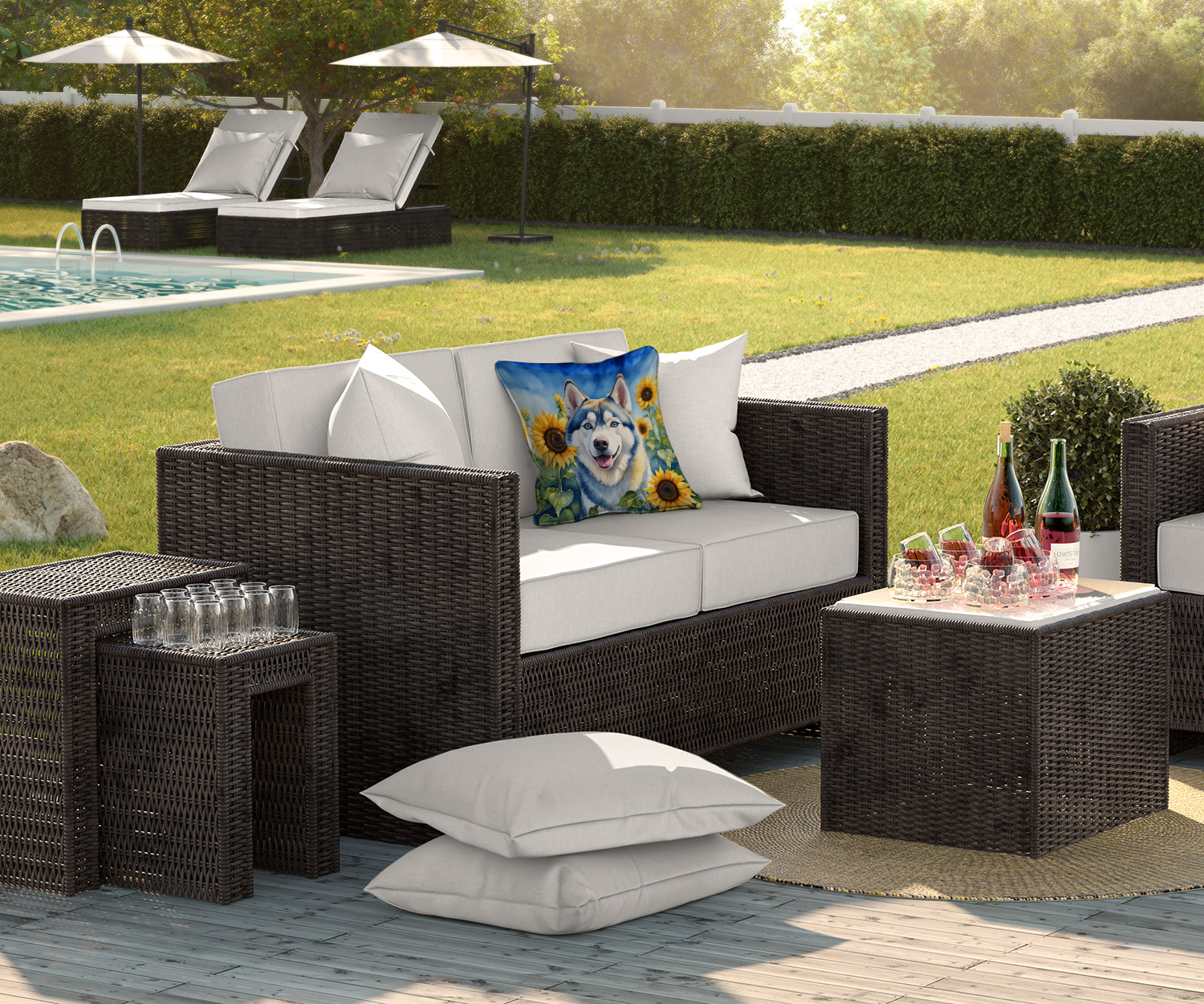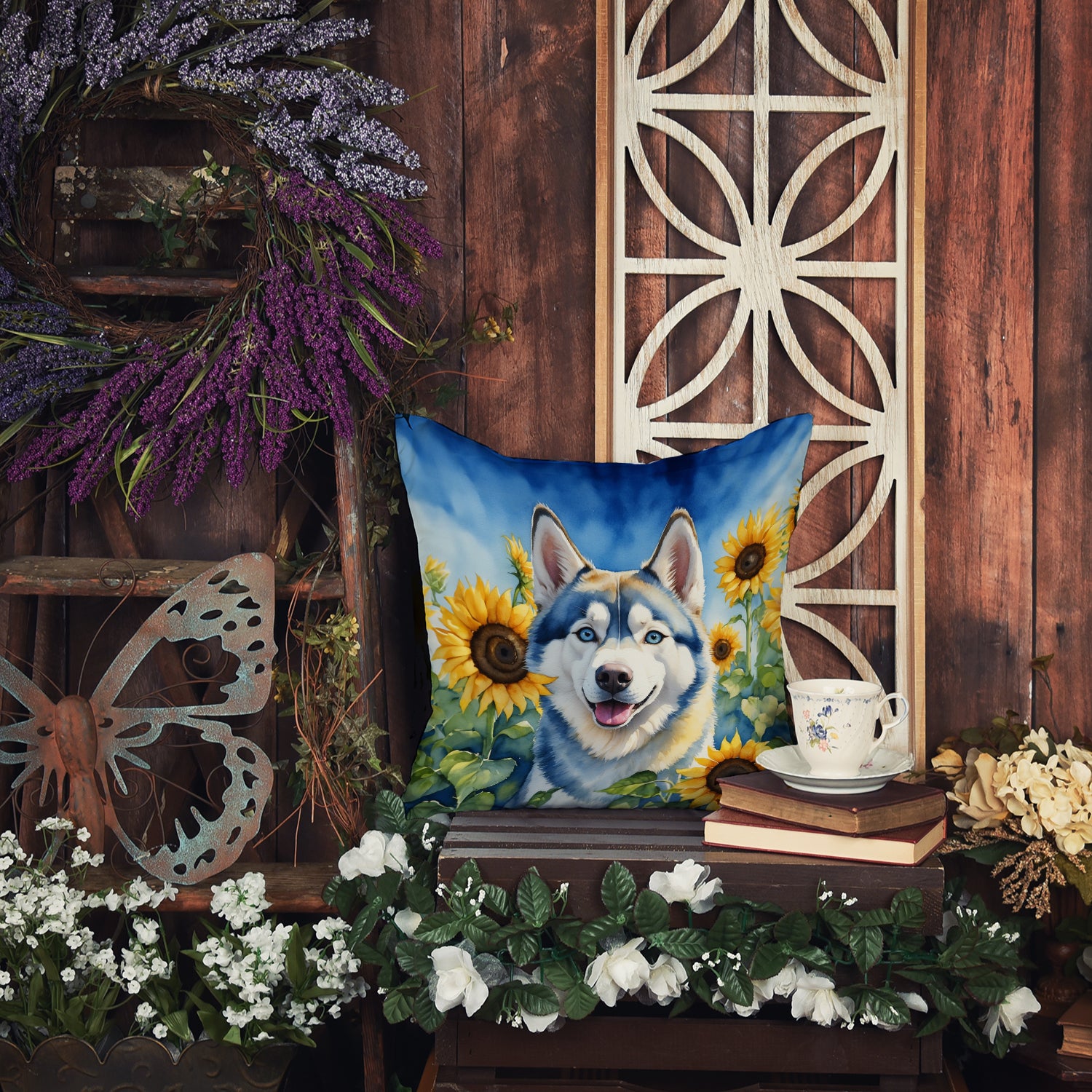Throw Pillow featuring breed specific Siberian Husky artwork. Revitalize your outdoor or indoor living space with Caroline's Treasures 18x18 Fabric Decorative Pillow. With a generously sized dimension of approximately 18 inches by 18 inches, this pillow makes a comfortable and aesthetic addition to any seating area. Made from a unique, water-resistant material developed by Caroline's Treasures, the pillow sham is 100% polyester fabric that's durable and ready to weather any condition. Its vibrant, full-color artwork will not fade over time as it is dyed with color-fast dyes. Whether you place it on your patio furniture, porch, veranda, or indoor couch, its soft canvas fabric ensures a cozy experience. The pillow is handcrafted in the United States, featuring a sham created from three pieces of fabric and a polyester insert for enduring shape and overstuffed comfort. Despite being robustly built to endure the outdoors, it is as soft and snug as your favorite indoor cushions. Please note, as all our pillows are handmade, sizes may vary slightly, adding to the charm of this unique decorative item.