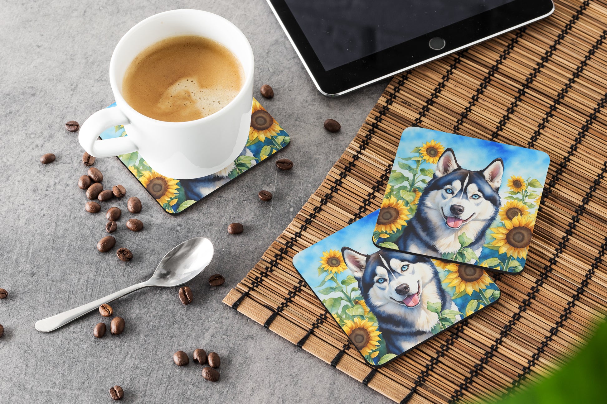 Foam Coasters featuring breed specific Siberian Husky artwork. Presenting our Set of 4 Foam Coasters, a stylish and practical addition to your table setting. Each square coaster, measuring 3 1/2 inches by 3 1/2 inches, is perfectly sized to accommodate various drinkware, from coffee mugs to tumblers. These coasters stand out with their full-color artwork, permanently dyed onto the material for a vibrant and fade-resistant finish. They're not just functional, they're a fashionable statement, adding a touch of flair to any gathering or event. Our foam coasters serve a dual purpose - they protect your table from water stains and are perfect for both hot and cold drinks. The material used is similar to that of our high-quality mouse pads, ensuring durability and heat resistance. These coasters are easy to maintain - simply wash them in the top of your dishwasher and lay flat to dry. The design won't come off, ensuring they retain their vivid colors for years. Pair them with one of our insulated coolers or huggers for a cohesive, thoughtful gift set. Enhance your beverage experience with our Set of 4 Foam Coasters.