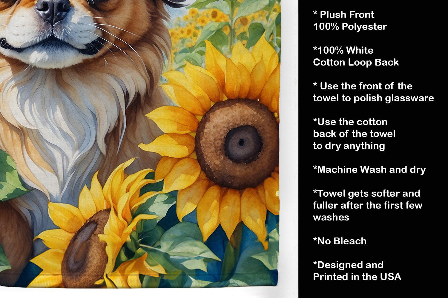 Tibetan Spaniel in Sunflowers Kitchen Towel