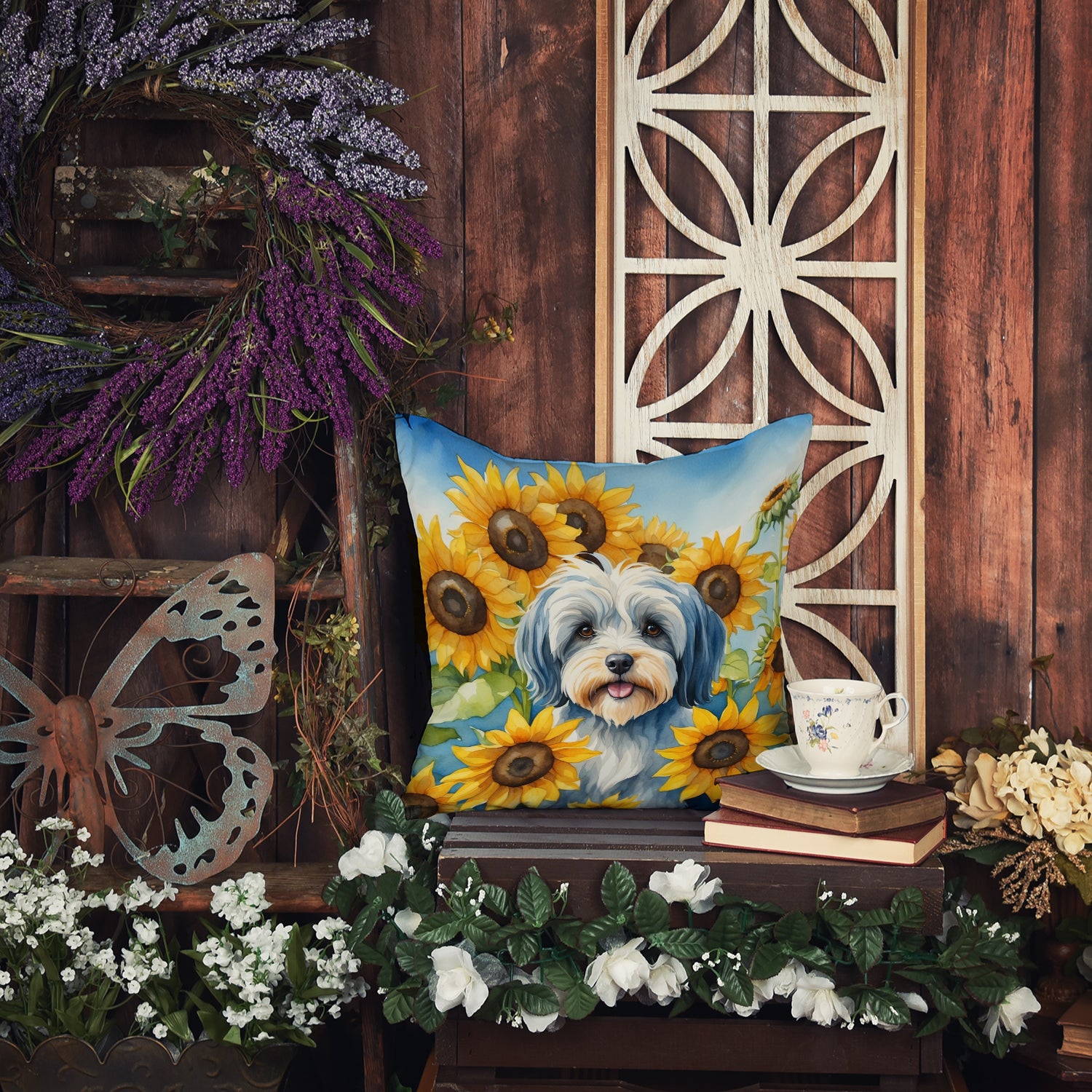 Throw Pillow featuring breed specific Tibetan Terrier artwork. Add a touch of vibrancy and comfort to your outdoor seating with Caroline's Treasures Fabric Decorative Pillow. Measuring approximately 14 inches by 14 inches, this outdoor pillow is crafted to elevate the appeal of your patio furniture, infusing it with vivid color and artistic flair. The pillow includes a 100% Polyester Fabric sham filled with a quality pillow form to provide superior comfort. Innovatively made from our brand new material, specifically woven for its water resistance, this pillow is designed for durability. The soft canvas fabric offers versatility in use, fit for your indoor couch or your outdoor patio, porch, or veranda. The fabric is dyed with colorfast dyes built for resilience against weather conditions, ensuring the pillow retains its beauty over time. Constructed by sewing three fabric pieces to create a sham, the polyester insert is then nestled inside to form the pillow, resulting in an overstuffed pillow that maintains its shape. Both the sham and the pillow insert are proudly made in the United States. As the pillows are handcrafted, there may be minor variations in size, further enhancing their unique charm. Experience comfort in style with Caroline's Treasures Fabric Decorative Pillow.