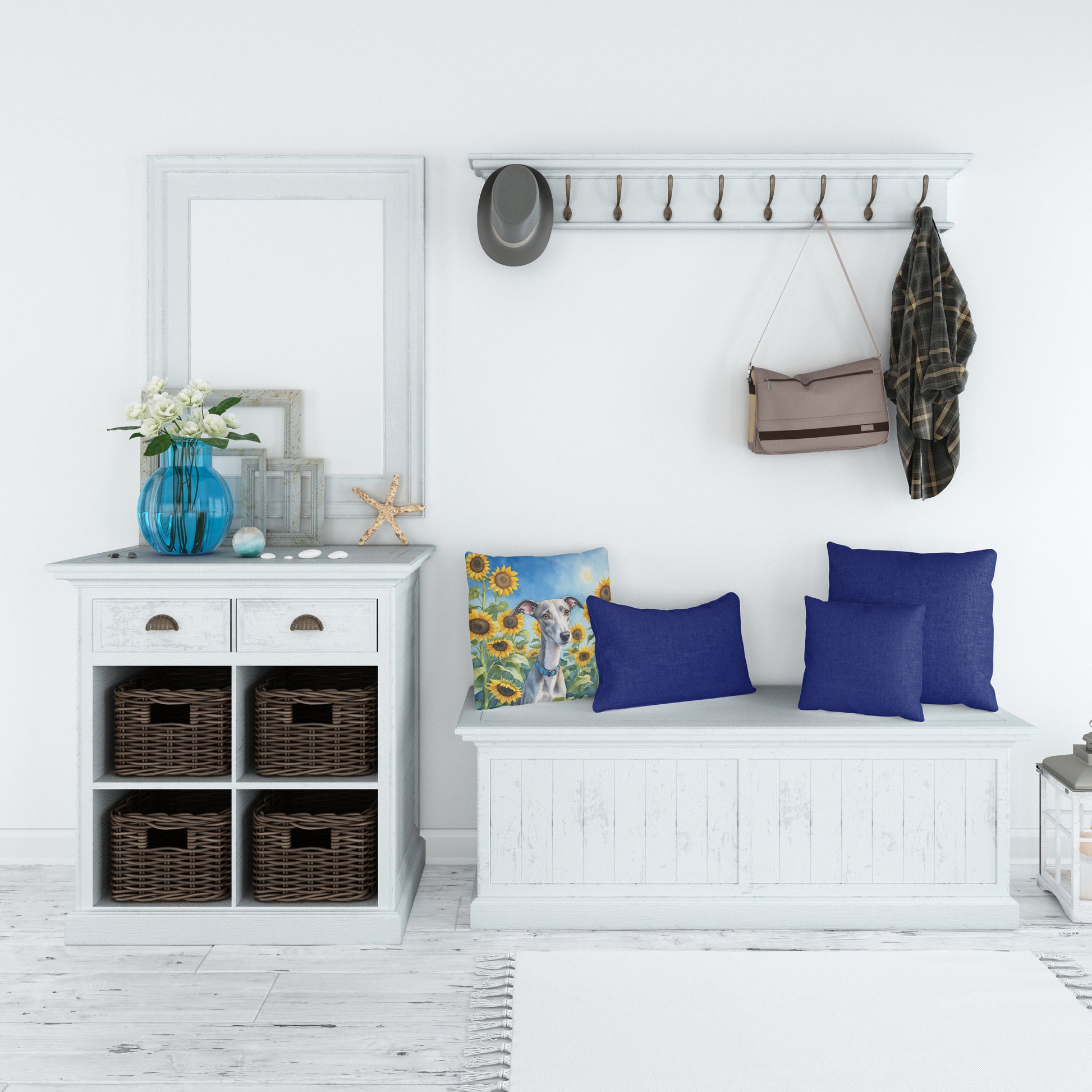 Throw Pillow featuring breed specific Whippet artwork. Revitalize your outdoor or indoor living space with Caroline's Treasures 18x18 Fabric Decorative Pillow. With a generously sized dimension of approximately 18 inches by 18 inches, this pillow makes a comfortable and aesthetic addition to any seating area. Made from a unique, water-resistant material developed by Caroline's Treasures, the pillow sham is 100% polyester fabric that's durable and ready to weather any condition. Its vibrant, full-color artwork will not fade over time as it is dyed with color-fast dyes. Whether you place it on your patio furniture, porch, veranda, or indoor couch, its soft canvas fabric ensures a cozy experience. The pillow is handcrafted in the United States, featuring a sham created from three pieces of fabric and a polyester insert for enduring shape and overstuffed comfort. Despite being robustly built to endure the outdoors, it is as soft and snug as your favorite indoor cushions. Please note, as all our pillows are handmade, sizes may vary slightly, adding to the charm of this unique decorative item.