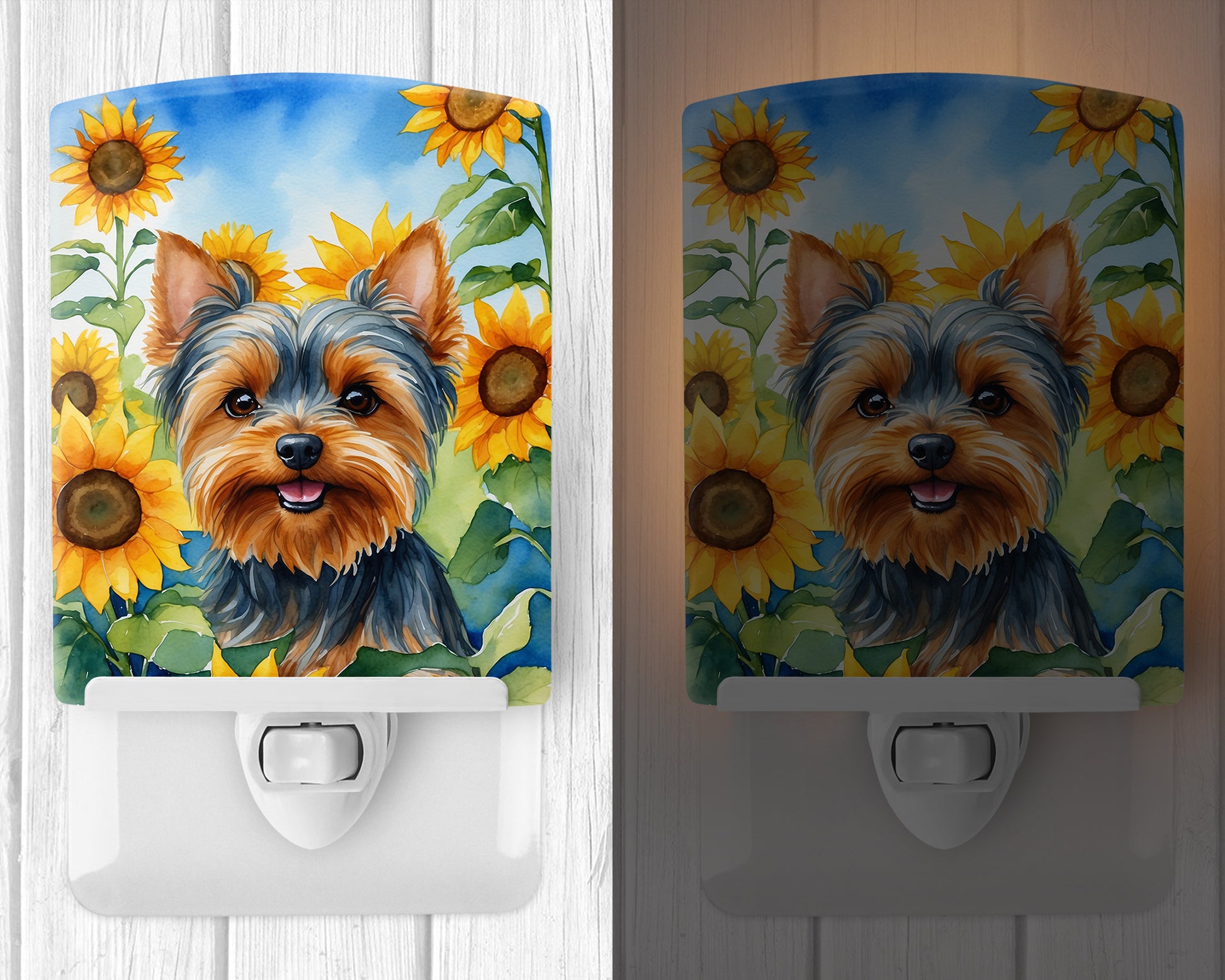 Yorkshire Terrier in Sunflowers Ceramic Night Light