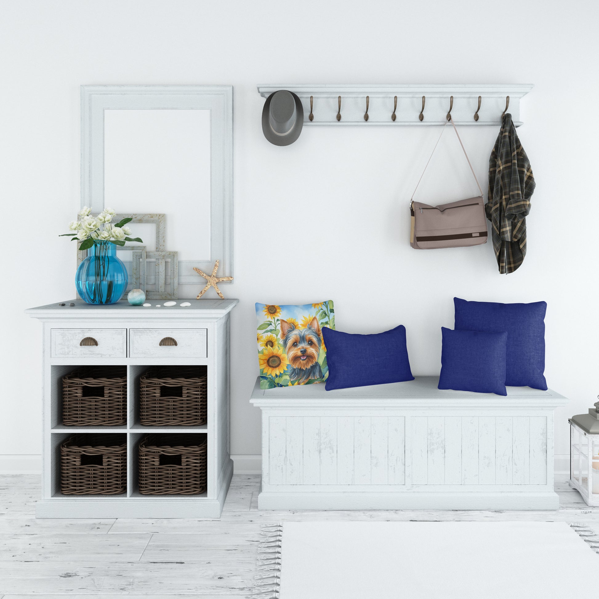 Yorkshire Terrier in Sunflowers Throw Pillow