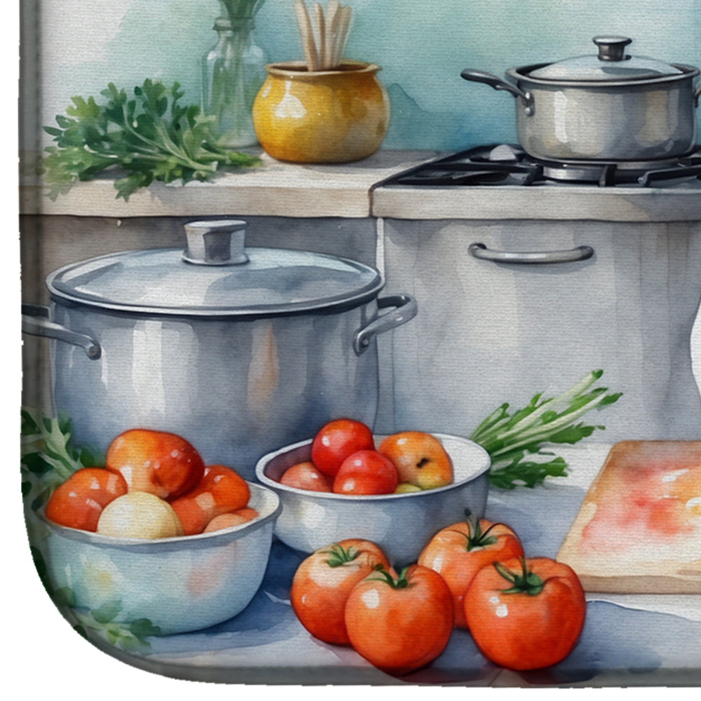 Dish Drying Mat featuring breed specific Akita artwork. Say goodbye to messy countertops and soggy dish towels with our innovative dish drying mat. Our high-quality dish drying pad is designed to keep your countertops dry while offering a stylish and efficient solution. Whether you're air drying dishes, glasses, stemware, silverware, pots, pans, bottles, or even fruits and vegetables, our dish mat is the perfect choice. The 14 inches x 22 inches size fits most counters and dish drying racks, and the non-slip design ensures stability. Made with water-absorbent polyester and a polyurethane foam insert, our dish drying mat is not only functional but also durable. It's machine washable and printed in the USA for long-lasting use. The beautiful artwork adds flair to your kitchen decor, making it a perfect housewarming gift or present for any occasion. Upgrade your kitchen experience with our absorbent and versatile dish drying mat.
