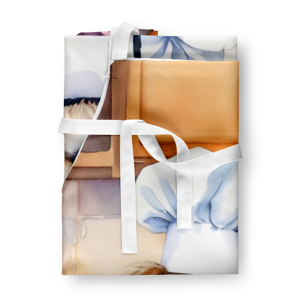 Apron featuring breed specific Lhasa Apso artwork. Elevate your cooking, baking, and grilling experiences with our versatile Kitchen or BBQ Apron. This Bib Style apron isn't just limited to culinary activities - it also serves as an excellent baking apron, artist apron, server apron, gardening apron, or even a dog grooming apron. The apron showcases vibrant full-color artwork contributed by one of our talented artists, bringing a dash of style to your daily tasks. With dimensions of approximately 27"W x 30"H, it provides ample coverage to protect your clothing from spills and splashes. Our apron is meticulously crafted from 100% Ultra Spun Polyester, known for its durability and lightweight nature. The apron comes with white tie straps, ensuring a comfortable and adjustable fit for all. It's a perfect choice for kitchen apron enthusiasts, whether you are a woman or a man. Designed for easy maintenance, this apron is fully machine washable. The quick-drying polyester material actively reduces staining, keeping your apron looking fresh and new for longer. Our beautifully designed apron isn't just a functional kitchen accessory - it's a fashion statement in the culinary world!