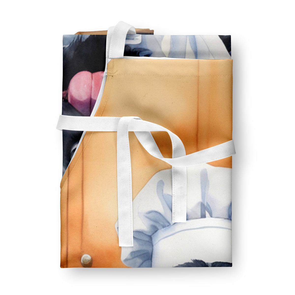 Apron featuring breed specific Newfoundland artwork. Elevate your cooking, baking, and grilling experiences with our versatile Kitchen or BBQ Apron. This Bib Style apron isn't just limited to culinary activities - it also serves as an excellent baking apron, artist apron, server apron, gardening apron, or even a dog grooming apron. The apron showcases vibrant full-color artwork contributed by one of our talented artists, bringing a dash of style to your daily tasks. With dimensions of approximately 27"W x 30"H, it provides ample coverage to protect your clothing from spills and splashes. Our apron is meticulously crafted from 100% Ultra Spun Polyester, known for its durability and lightweight nature. The apron comes with white tie straps, ensuring a comfortable and adjustable fit for all. It's a perfect choice for kitchen apron enthusiasts, whether you are a woman or a man. Designed for easy maintenance, this apron is fully machine washable. The quick-drying polyester material actively reduces staining, keeping your apron looking fresh and new for longer. Our beautifully designed apron isn't just a functional kitchen accessory - it's a fashion statement in the culinary world!