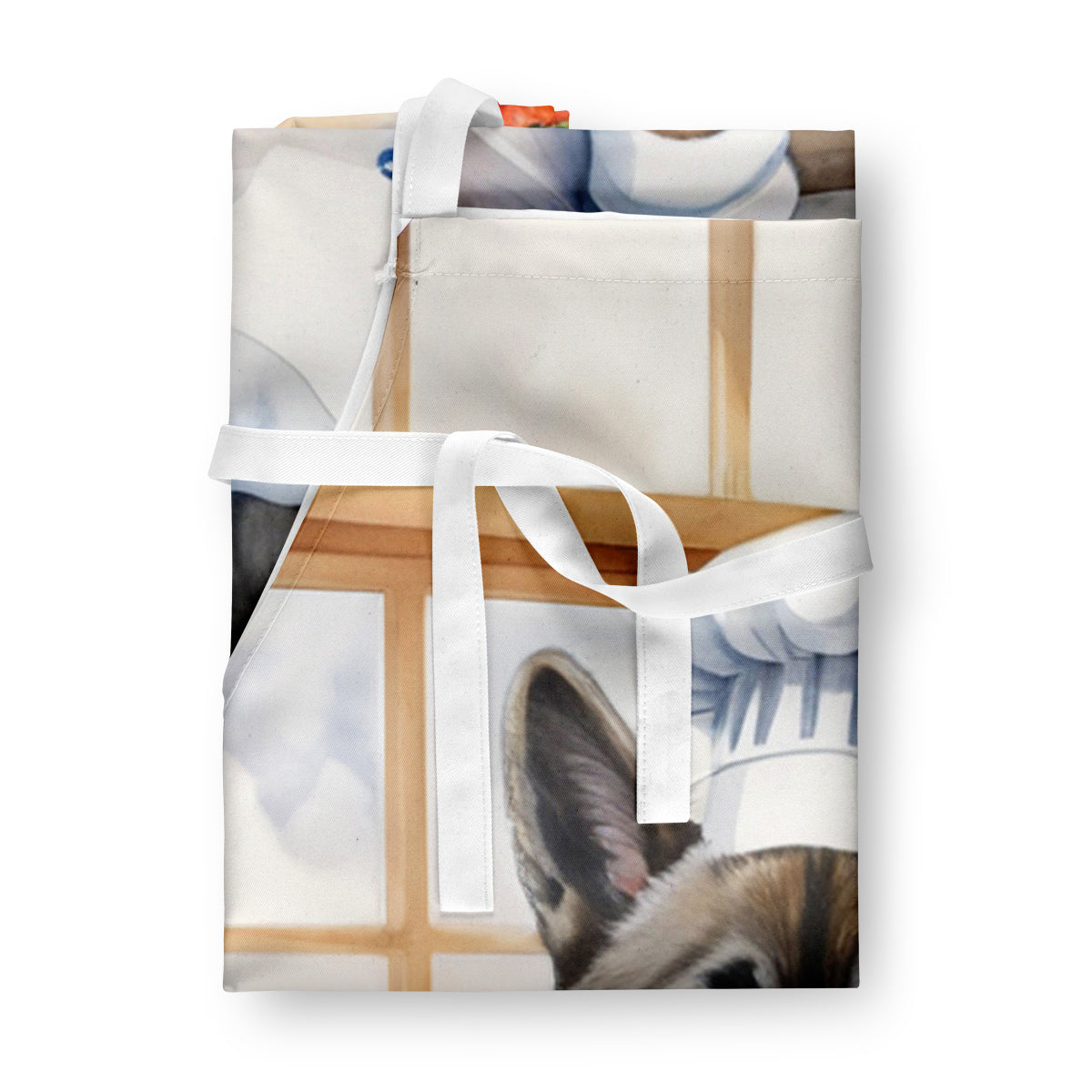 Apron featuring breed specific Norwegian Elkhound artwork. Elevate your cooking, baking, and grilling experiences with our versatile Kitchen or BBQ Apron. This Bib Style apron isn't just limited to culinary activities - it also serves as an excellent baking apron, artist apron, server apron, gardening apron, or even a dog grooming apron. The apron showcases vibrant full-color artwork contributed by one of our talented artists, bringing a dash of style to your daily tasks. With dimensions of approximately 27"W x 30"H, it provides ample coverage to protect your clothing from spills and splashes. Our apron is meticulously crafted from 100% Ultra Spun Polyester, known for its durability and lightweight nature. The apron comes with white tie straps, ensuring a comfortable and adjustable fit for all. It's a perfect choice for kitchen apron enthusiasts, whether you are a woman or a man. Designed for easy maintenance, this apron is fully machine washable. The quick-drying polyester material actively reduces staining, keeping your apron looking fresh and new for longer. Our beautifully designed apron isn't just a functional kitchen accessory - it's a fashion statement in the culinary world!