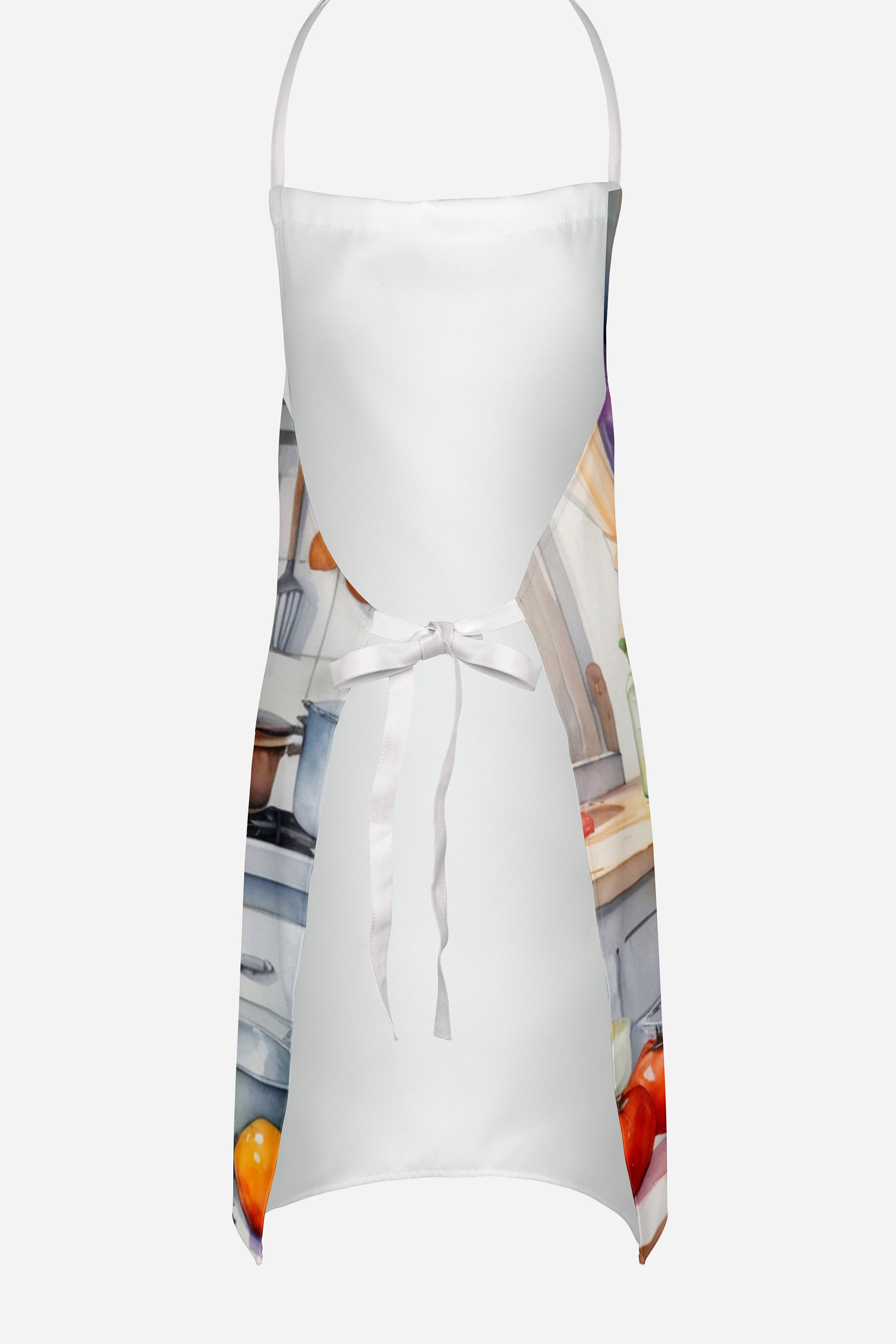 Apron featuring breed specific Poodle artwork. Elevate your cooking, baking, and grilling experiences with our versatile Kitchen or BBQ Apron. This Bib Style apron isn't just limited to culinary activities - it also serves as an excellent baking apron, artist apron, server apron, gardening apron, or even a dog grooming apron. The apron showcases vibrant full-color artwork contributed by one of our talented artists, bringing a dash of style to your daily tasks. With dimensions of approximately 27"W x 30"H, it provides ample coverage to protect your clothing from spills and splashes. Our apron is meticulously crafted from 100% Ultra Spun Polyester, known for its durability and lightweight nature. The apron comes with white tie straps, ensuring a comfortable and adjustable fit for all. It's a perfect choice for kitchen apron enthusiasts, whether you are a woman or a man. Designed for easy maintenance, this apron is fully machine washable. The quick-drying polyester material actively reduces staining, keeping your apron looking fresh and new for longer. Our beautifully designed apron isn't just a functional kitchen accessory - it's a fashion statement in the culinary world!