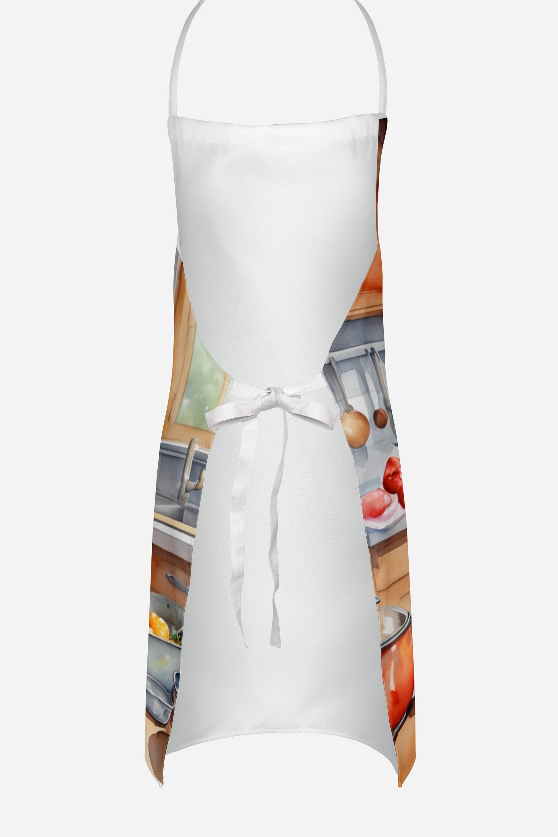 Apron featuring breed specific Rhodesian Ridgeback artwork. Elevate your cooking, baking, and grilling experiences with our versatile Kitchen or BBQ Apron. This Bib Style apron isn't just limited to culinary activities - it also serves as an excellent baking apron, artist apron, server apron, gardening apron, or even a dog grooming apron. The apron showcases vibrant full-color artwork contributed by one of our talented artists, bringing a dash of style to your daily tasks. With dimensions of approximately 27"W x 30"H, it provides ample coverage to protect your clothing from spills and splashes. Our apron is meticulously crafted from 100% Ultra Spun Polyester, known for its durability and lightweight nature. The apron comes with white tie straps, ensuring a comfortable and adjustable fit for all. It's a perfect choice for kitchen apron enthusiasts, whether you are a woman or a man. Designed for easy maintenance, this apron is fully machine washable. The quick-drying polyester material actively reduces staining, keeping your apron looking fresh and new for longer. Our beautifully designed apron isn't just a functional kitchen accessory - it's a fashion statement in the culinary world!
