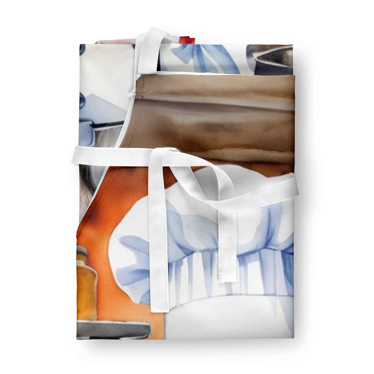Apron featuring breed specific Shih Tzu artwork. Elevate your cooking, baking, and grilling experiences with our versatile Kitchen or BBQ Apron. This Bib Style apron isn't just limited to culinary activities - it also serves as an excellent baking apron, artist apron, server apron, gardening apron, or even a dog grooming apron. The apron showcases vibrant full-color artwork contributed by one of our talented artists, bringing a dash of style to your daily tasks. With dimensions of approximately 27"W x 30"H, it provides ample coverage to protect your clothing from spills and splashes. Our apron is meticulously crafted from 100% Ultra Spun Polyester, known for its durability and lightweight nature. The apron comes with white tie straps, ensuring a comfortable and adjustable fit for all. It's a perfect choice for kitchen apron enthusiasts, whether you are a woman or a man. Designed for easy maintenance, this apron is fully machine washable. The quick-drying polyester material actively reduces staining, keeping your apron looking fresh and new for longer. Our beautifully designed apron isn't just a functional kitchen accessory - it's a fashion statement in the culinary world!