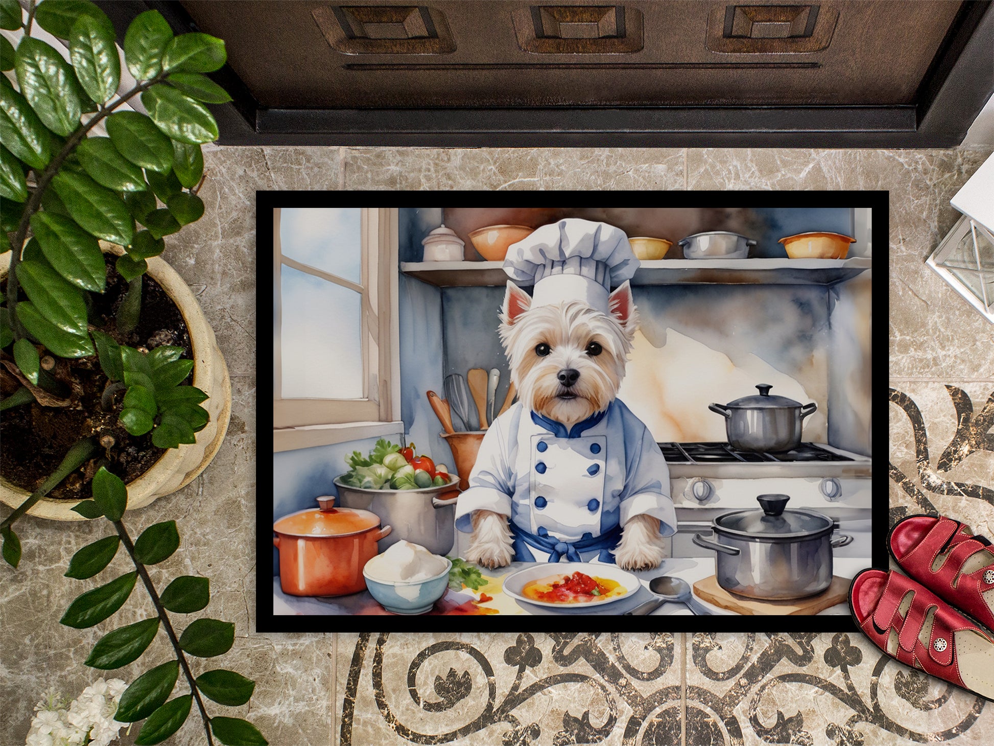 Doormat featuring breed specific West Highland White Terrier artwork. Welcome your guests in style with our Artwork Door Mat, designed to withstand almost any weather condition. This mat, measuring approximately 24 by 36 inches, is held together by durable black binding tape. Its top layer, composed of polyester felt, is dyed with the eye-catching image you see on the mat. A few layers below provide the mat with stability, while its rubber bottom is stamped to help prevent slipping and ensures safety. Our mat works wonderfully as both an indoor or outdoor door mat. For cleaning, simply hose it off with water or use a power washer - no need for any cleaner that produces suds. Avoid scrubbing with a brush, instead, opt for the vacuum on floor setting. Designed manufactured and printed in the USA, this mat is a perfect addition to your porch, outdoor kitchen, entryway, or any indoor space. Its unique design makes it a charming decorative rug that greets your guests and adds a stylish touch to your home decor.