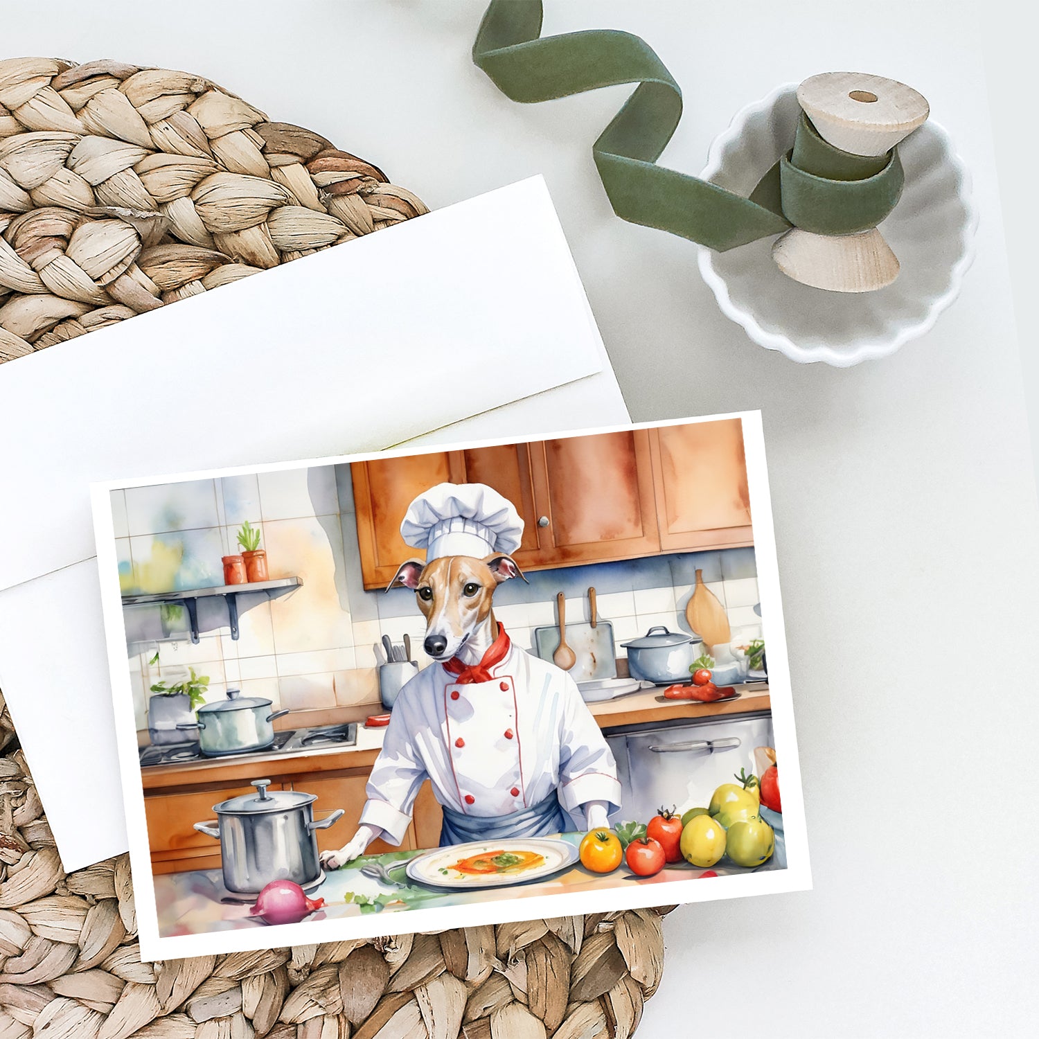 Greeting Cards Pack of 8 featuring breed specific Whippet artwork. Celebrate special moments with Caroline's Treasures Printed Greeting Card Pack. This pack includes eight beautifully folded 5x7 cards, accompanied by eight matching white envelopes. With blank interiors, these cards provide ample space for your personalized messages and heartfelt holiday greetings. Each card features captivating full-color artwork, meticulously printed in our facility on high-quality 80 lb cover stock or 216 GSM. The super smooth finish of the white cards enhances the visual impact of the artwork, creating a truly stunning presentation. Designed by our talented in-house artists or licensed artists, the artwork on these cards showcases their creativity and attention to detail. From vibrant illustrations to captivating designs, each card tells its own unique story. Whether it's for birthdays, anniversaries, holidays, or any special occasion, Caroline's Treasures Greeting Card Pack is the perfect way to convey your heartfelt sentiments. Share joy, love, and warm wishes with these exquisite cards and make every moment unforgettable.