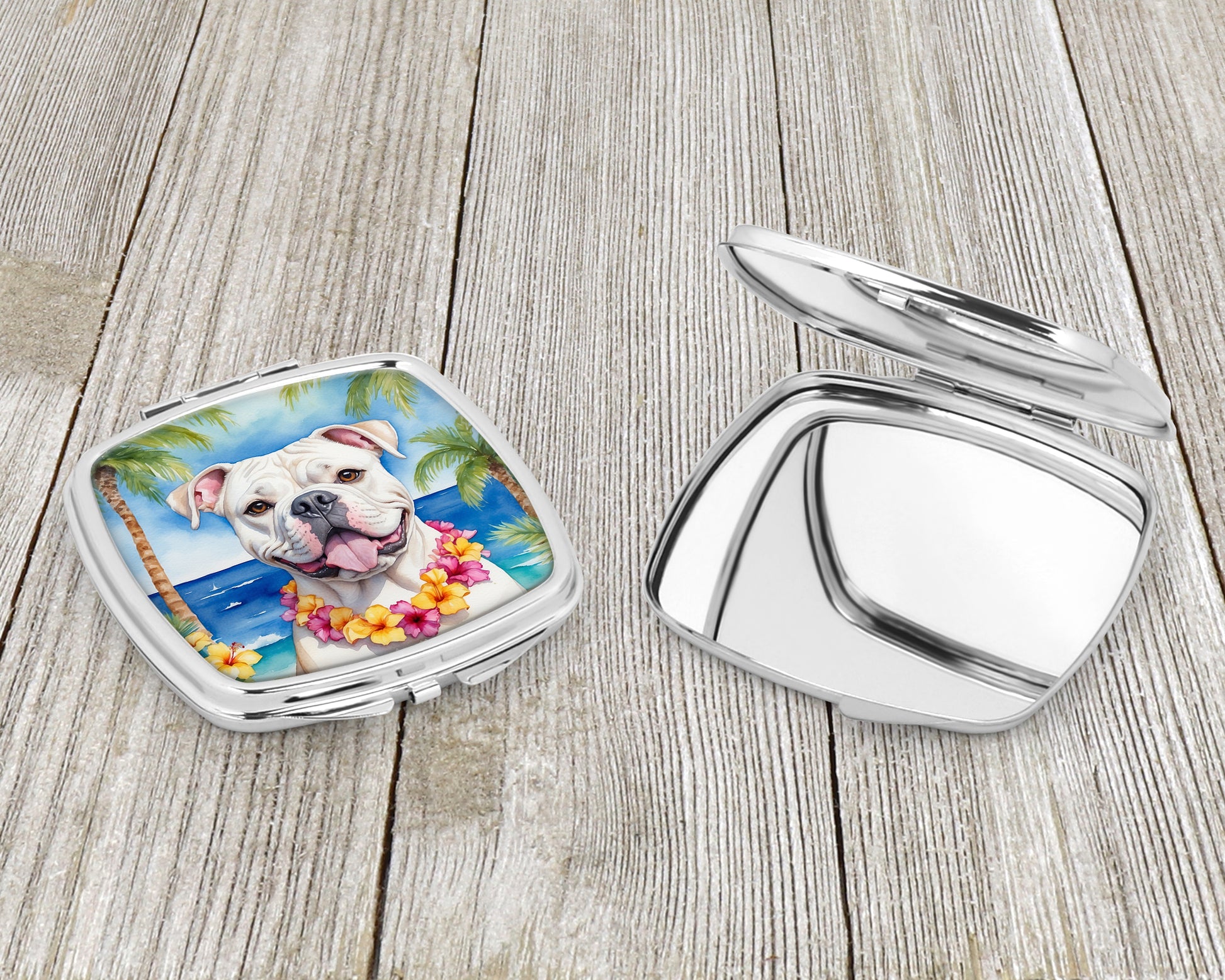 Compact Mirror featuring breed specific American Bulldog artwork. Introducing our Square Compact Mirror, a blend of elegance, functionality, and compactness, perfect for on-the-go touch-ups. This Silvertone metal mirror, with dimensions of 2.75 inches x 3 inches x .3 inches, fits effortlessly into your purse, handbag, or pocket, ensuring that you can check your appearance anytime, anywhere. Our compact mirror stands out with its eye-catching artwork on the front, adding a dash of style to this practical accessory. It is more than just a mirror; it's a statement piece that reflects your personality and aesthetic. When opened, this compact reveals two mirrors inside, doubling your perspective for precise touch-ups. The Silvertone metal construction ensures durability while maintaining a lightweight feel, making it an ideal everyday carry item. Whether you're rushing to a meeting, prepping for a dinner date, or just need a quick check on your look, our Square Compact Mirror is your reliable companion. Experience the perfect blend of style and practicality with this must-have accessory.