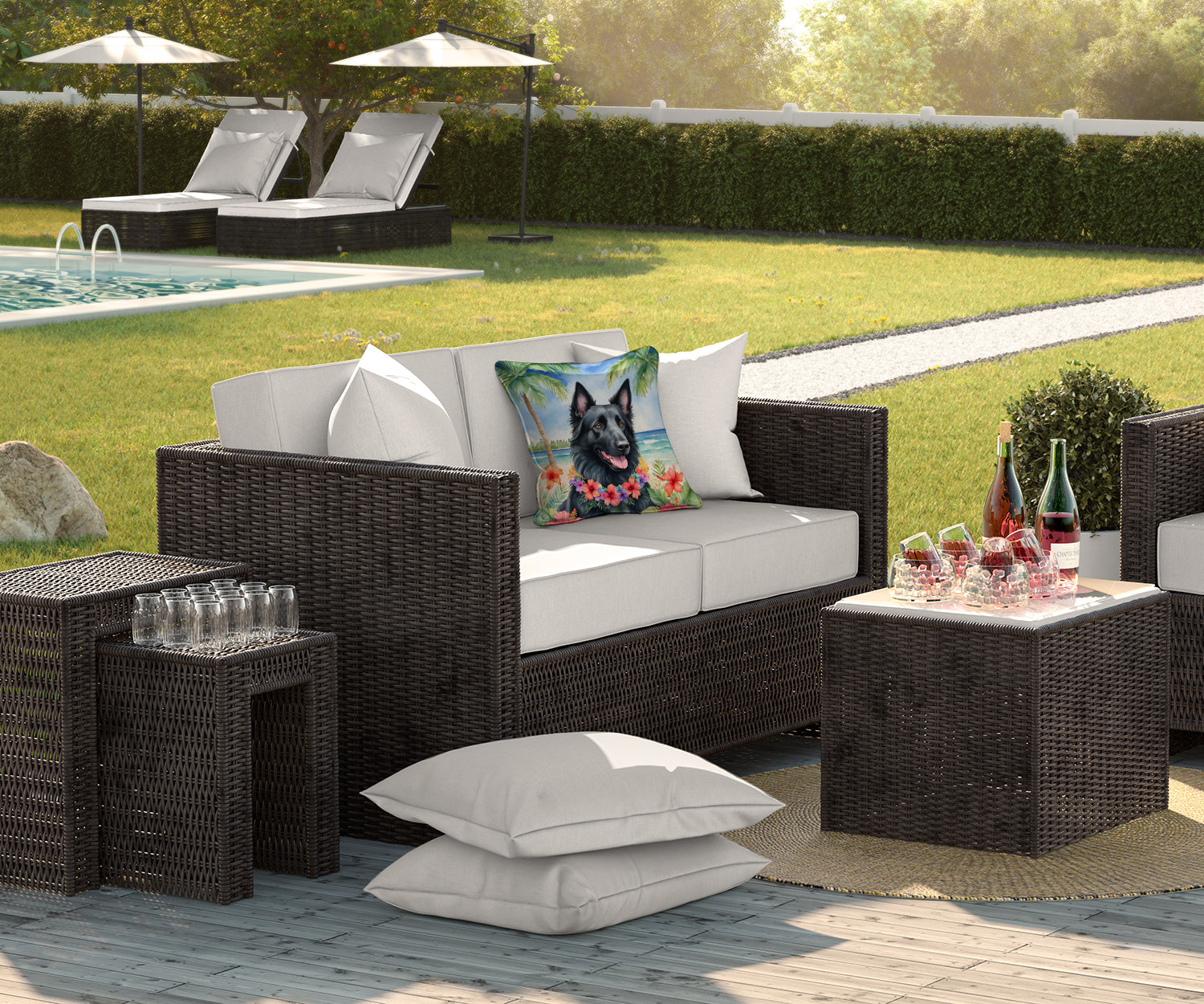 Belgian Sheepdog Luau Throw Pillow