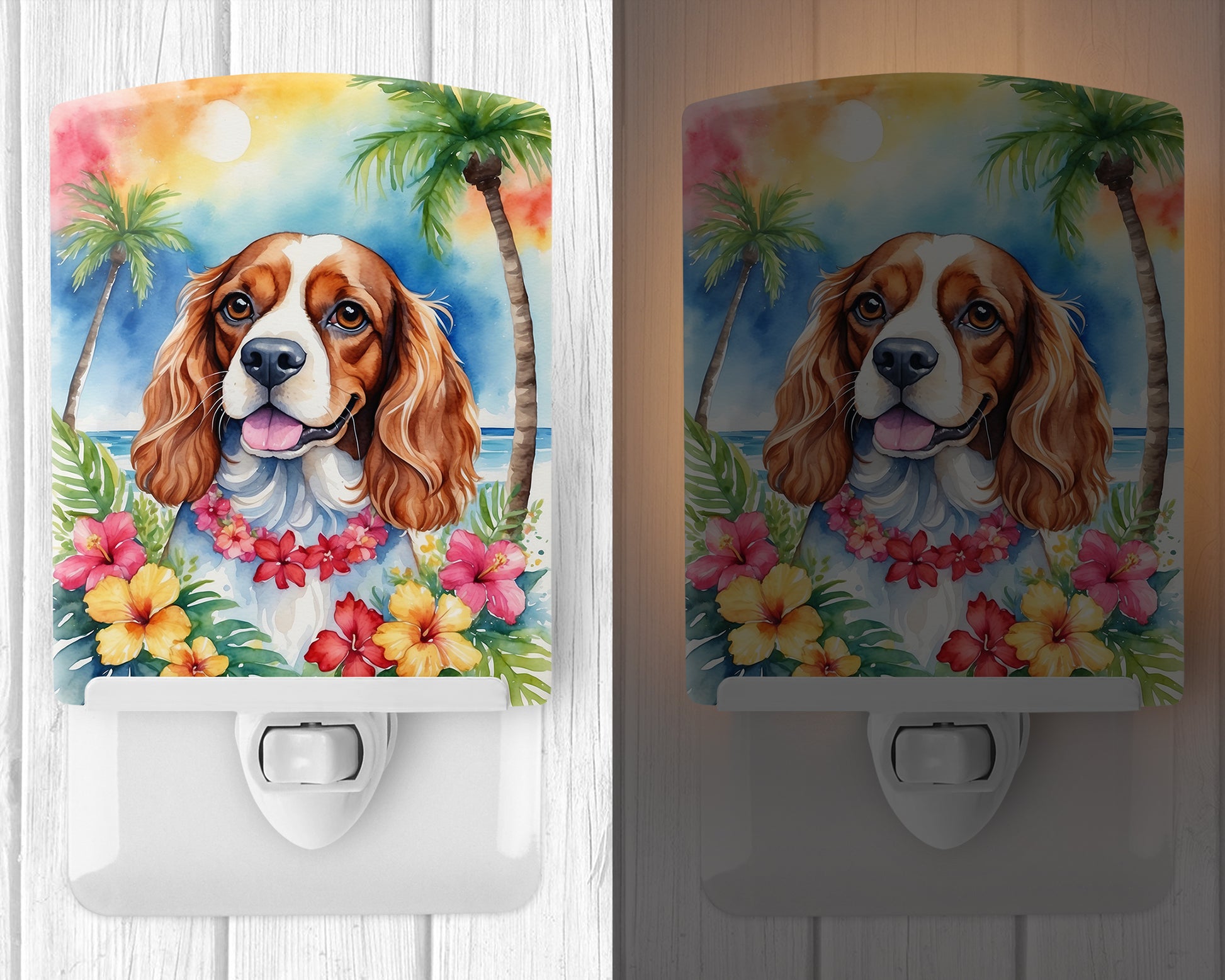 Ceramic Night Light featuring breed specific Cavalier King Charles Spaniel artwork. Introduce a splash of artistic flair and subtle illumination to your space with the Decorative Ceramic Night Light from Caroline's Treasures. Perfect for any room, this night light seamlessly blends functionality with an aesthetic appeal, offering a stylish solution to brighten up dark corners of your home or office. Boasting a six-inch high by four-inch wide ceramic tile at the front, it showcases vivid, full-color artwork from distinguished artists, transforming a simple utility into a vibrant art piece. The artwork is securely encased in a robust metal holder, ensuring durability and longevity. Two screws are provided to firmly affix the tile into the holder. The holder extends three inches deep, housing an included bulb that emits a soft, welcoming glow. This product meets all safety standards, as evidenced by its UL approval. Proudly made in the United States from imported components, this Decorative Ceramic Night Light is not just a functional device; it's a statement piece that enhances the ambiance of your surroundings.