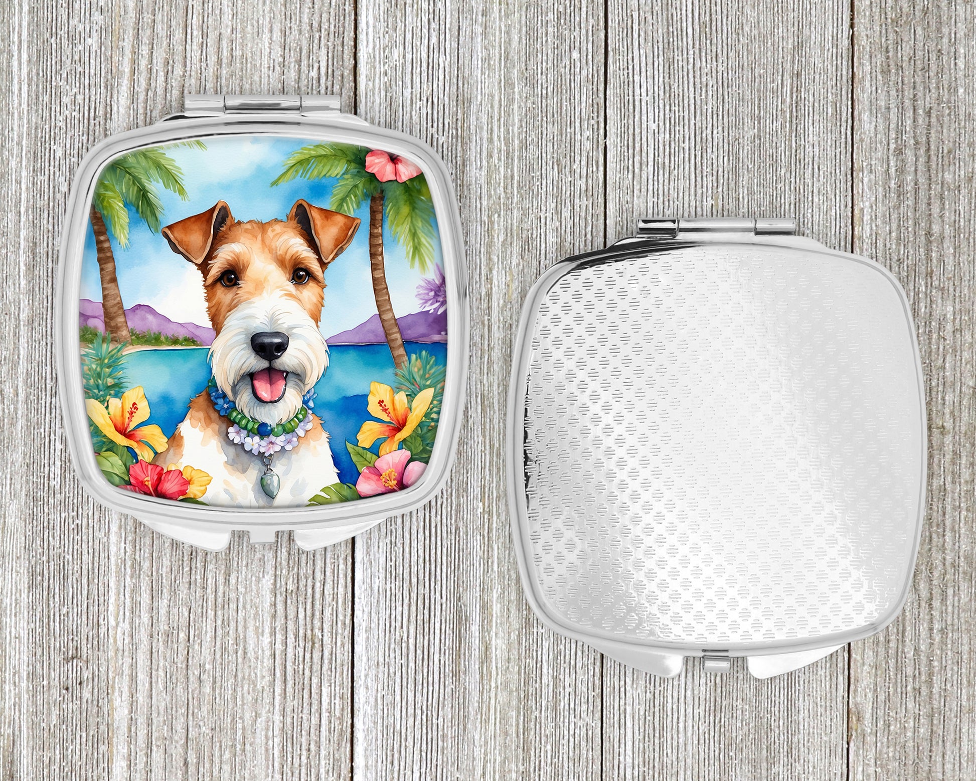 Compact Mirror featuring breed specific Fox Terrier artwork. Introducing our Square Compact Mirror, a blend of elegance, functionality, and compactness, perfect for on-the-go touch-ups. This Silvertone metal mirror, with dimensions of 2.75 inches x 3 inches x .3 inches, fits effortlessly into your purse, handbag, or pocket, ensuring that you can check your appearance anytime, anywhere. Our compact mirror stands out with its eye-catching artwork on the front, adding a dash of style to this practical accessory. It is more than just a mirror; it's a statement piece that reflects your personality and aesthetic. When opened, this compact reveals two mirrors inside, doubling your perspective for precise touch-ups. The Silvertone metal construction ensures durability while maintaining a lightweight feel, making it an ideal everyday carry item. Whether you're rushing to a meeting, prepping for a dinner date, or just need a quick check on your look, our Square Compact Mirror is your reliable companion. Experience the perfect blend of style and practicality with this must-have accessory.