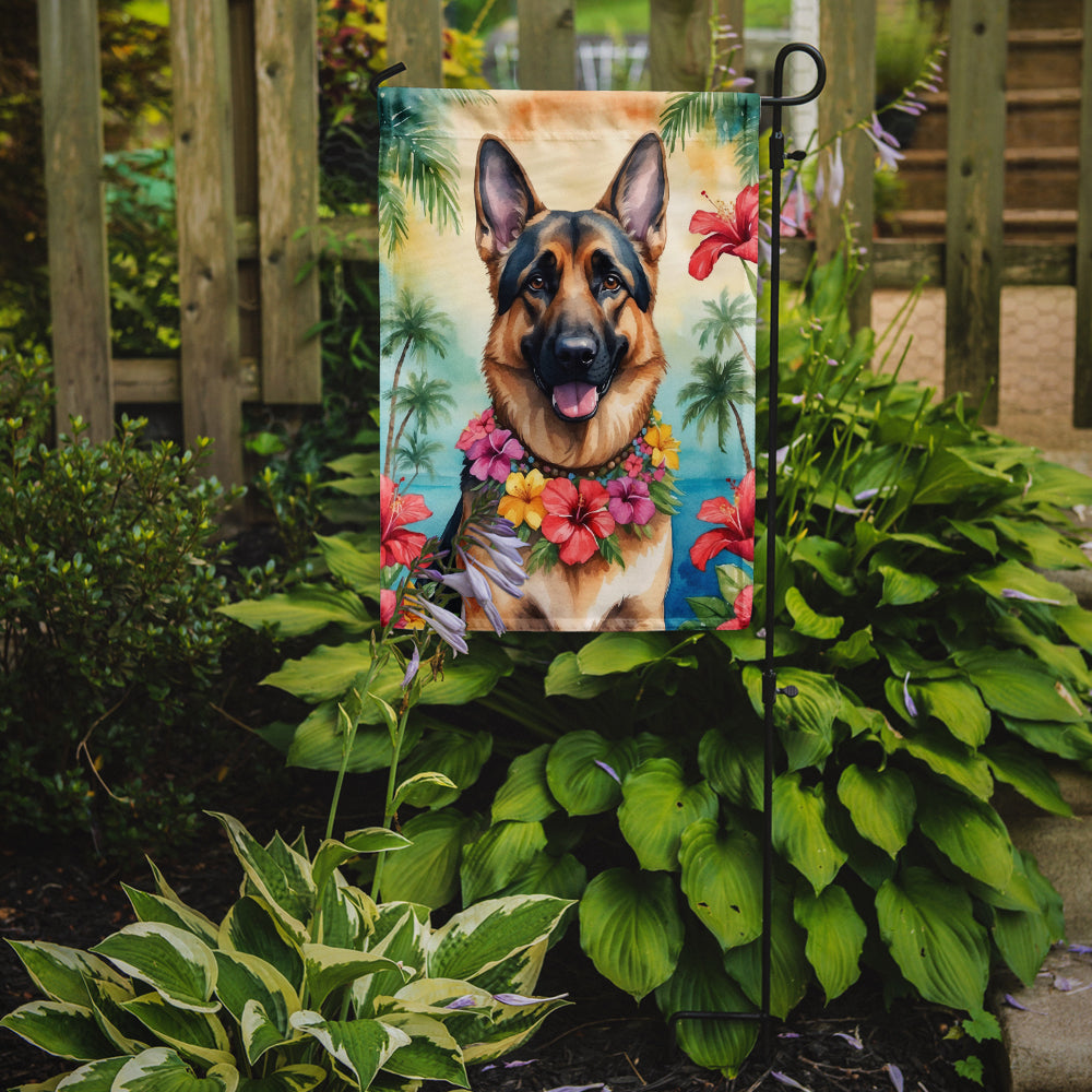 Garden Flag featuring breed specific German Shepherd artwork. Enhance the beauty of your garden, patio, or yard with Caroline's Treasures Decorative Garden Flag, proudly made in the USA. Crafted from two pieces of thick, double-sided polyester fabric, this 2-ply garden flag is designed to withstand various weather conditions, making it water-resistant and weatherproof. Featuring correctly readable words on both sides, this garden flag offers a delightful visual experience from any angle. With its heavier weight, it stands out among other garden flags, ensuring stability and durability even in wind, rain, and snow. Measuring approximately 11 1/4 inches by 15 1/2 inches, this flag allows you to personalize your outdoor decor. It comes with a 1 1/2-inch sleeve sewn in, allowing easy attachment to any standard garden flag stand or garden size porch hanger (sold separately). Make a statement in your outdoor space with Caroline's Treasures Decorative Garden Flag, a vibrant and high-quality flag that adds color and personality to your surroundings. Proudly made in the USA, it's a symbol of quality craftsmanship and attention to detail.