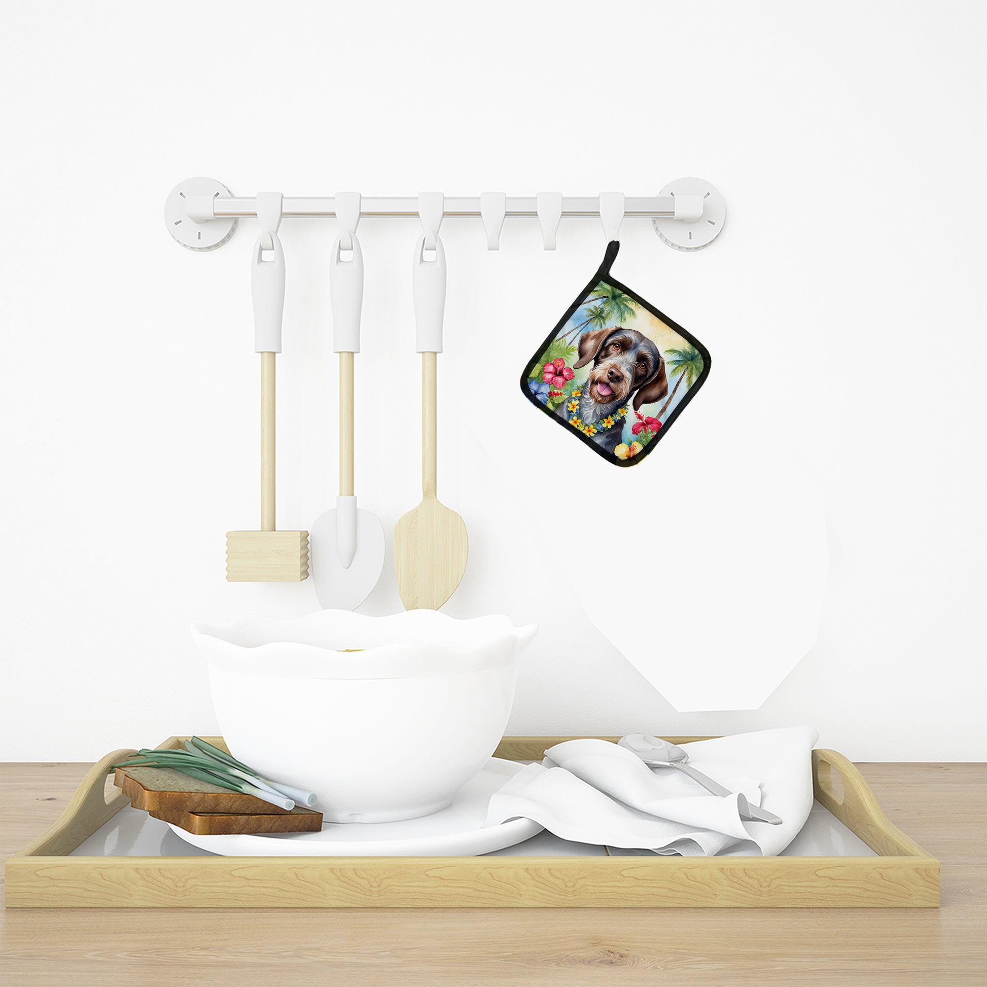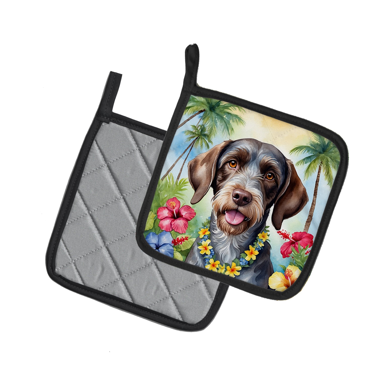 German Wirehaired Pointer Luau Pair of Pot Holders