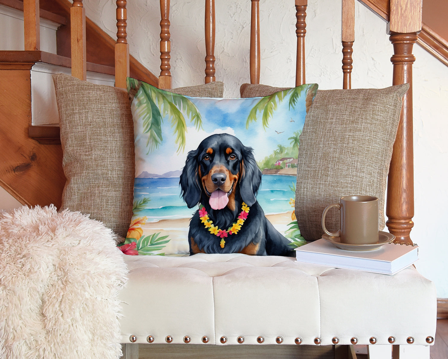 Gordon Setter Luau Throw Pillow