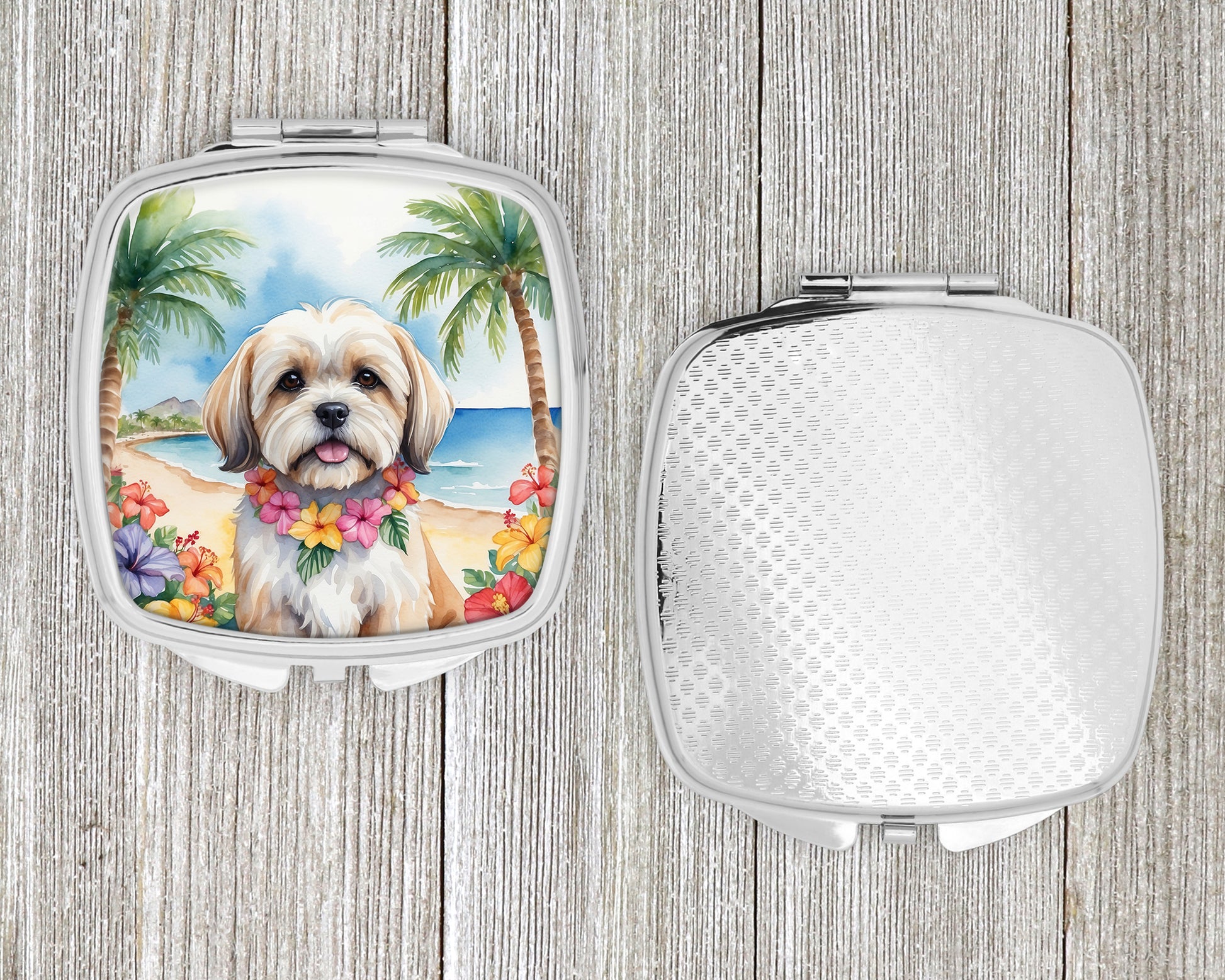 Compact Mirror featuring breed specific Lhasa Apso artwork. Introducing our Square Compact Mirror, a blend of elegance, functionality, and compactness, perfect for on-the-go touch-ups. This Silvertone metal mirror, with dimensions of 2.75 inches x 3 inches x .3 inches, fits effortlessly into your purse, handbag, or pocket, ensuring that you can check your appearance anytime, anywhere. Our compact mirror stands out with its eye-catching artwork on the front, adding a dash of style to this practical accessory. It is more than just a mirror; it's a statement piece that reflects your personality and aesthetic. When opened, this compact reveals two mirrors inside, doubling your perspective for precise touch-ups. The Silvertone metal construction ensures durability while maintaining a lightweight feel, making it an ideal everyday carry item. Whether you're rushing to a meeting, prepping for a dinner date, or just need a quick check on your look, our Square Compact Mirror is your reliable companion. Experience the perfect blend of style and practicality with this must-have accessory.