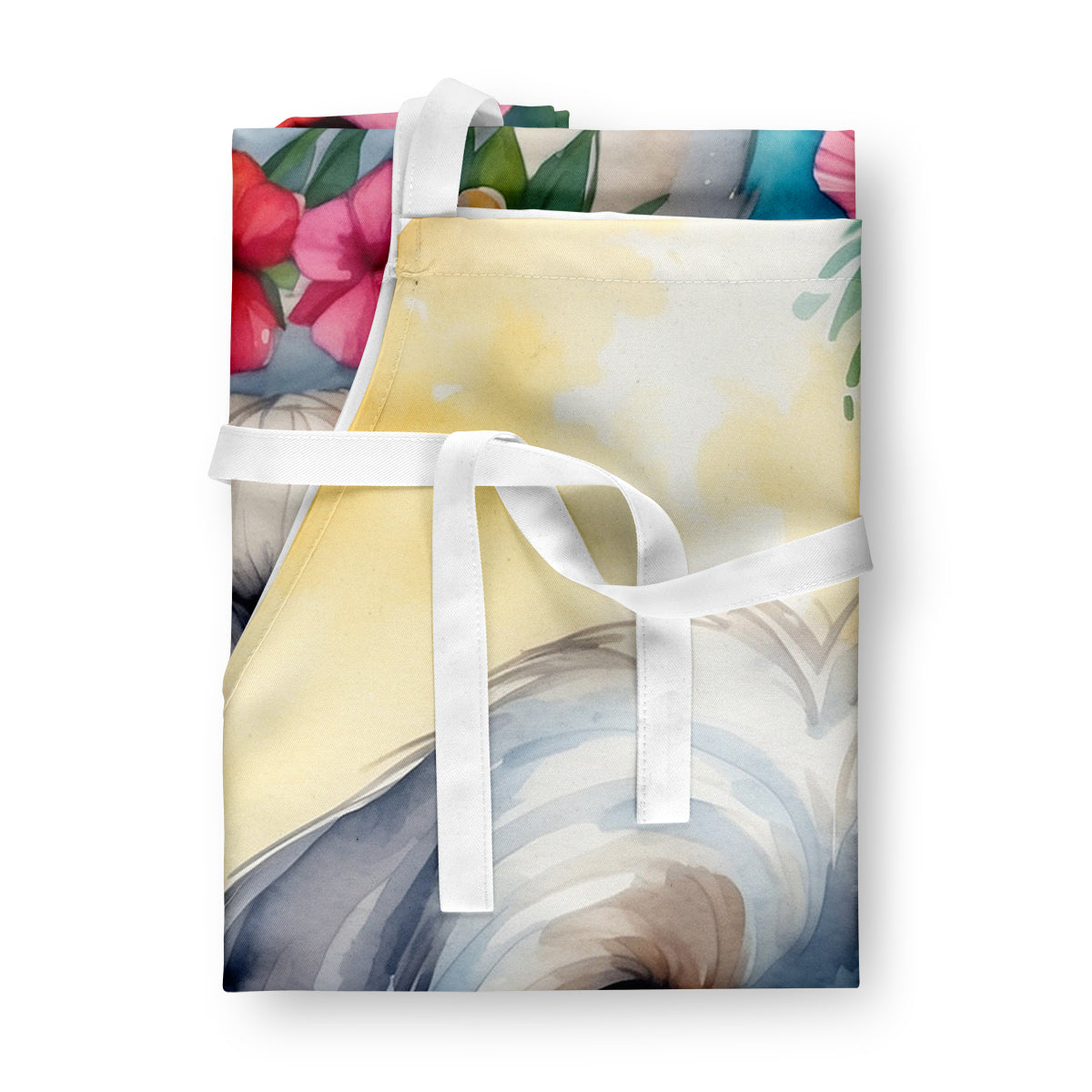 Apron featuring breed specific Lhasa Apso artwork. Elevate your cooking, baking, and grilling experiences with our versatile Kitchen or BBQ Apron. This Bib Style apron isn't just limited to culinary activities - it also serves as an excellent baking apron, artist apron, server apron, gardening apron, or even a dog grooming apron. The apron showcases vibrant full-color artwork contributed by one of our talented artists, bringing a dash of style to your daily tasks. With dimensions of approximately 27"W x 30"H, it provides ample coverage to protect your clothing from spills and splashes. Our apron is meticulously crafted from 100% Ultra Spun Polyester, known for its durability and lightweight nature. The apron comes with white tie straps, ensuring a comfortable and adjustable fit for all. It's a perfect choice for kitchen apron enthusiasts, whether you are a woman or a man. Designed for easy maintenance, this apron is fully machine washable. The quick-drying polyester material actively reduces staining, keeping your apron looking fresh and new for longer. Our beautifully designed apron isn't just a functional kitchen accessory - it's a fashion statement in the culinary world!