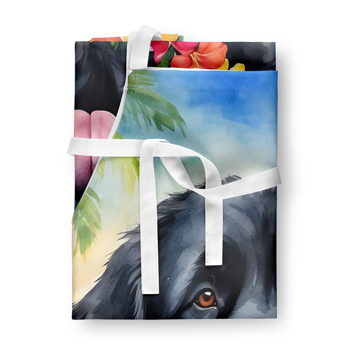 Apron featuring breed specific Newfoundland artwork. Elevate your cooking, baking, and grilling experiences with our versatile Kitchen or BBQ Apron. This Bib Style apron isn't just limited to culinary activities - it also serves as an excellent baking apron, artist apron, server apron, gardening apron, or even a dog grooming apron. The apron showcases vibrant full-color artwork contributed by one of our talented artists, bringing a dash of style to your daily tasks. With dimensions of approximately 27"W x 30"H, it provides ample coverage to protect your clothing from spills and splashes. Our apron is meticulously crafted from 100% Ultra Spun Polyester, known for its durability and lightweight nature. The apron comes with white tie straps, ensuring a comfortable and adjustable fit for all. It's a perfect choice for kitchen apron enthusiasts, whether you are a woman or a man. Designed for easy maintenance, this apron is fully machine washable. The quick-drying polyester material actively reduces staining, keeping your apron looking fresh and new for longer. Our beautifully designed apron isn't just a functional kitchen accessory - it's a fashion statement in the culinary world!