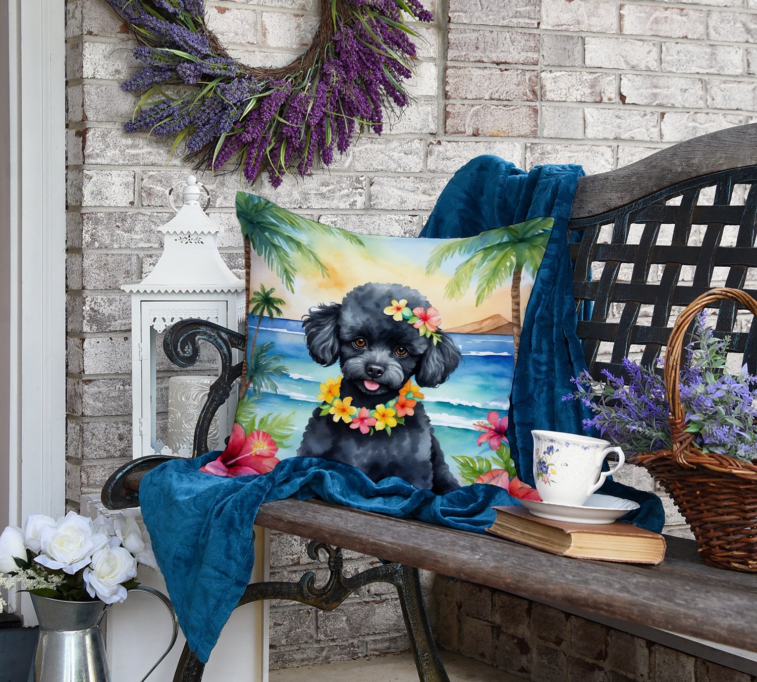 Throw Pillow featuring breed specific Poodle artwork. Revitalize your outdoor or indoor living space with Caroline's Treasures 18x18 Fabric Decorative Pillow. With a generously sized dimension of approximately 18 inches by 18 inches, this pillow makes a comfortable and aesthetic addition to any seating area. Made from a unique, water-resistant material developed by Caroline's Treasures, the pillow sham is 100% polyester fabric that's durable and ready to weather any condition. Its vibrant, full-color artwork will not fade over time as it is dyed with color-fast dyes. Whether you place it on your patio furniture, porch, veranda, or indoor couch, its soft canvas fabric ensures a cozy experience. The pillow is handcrafted in the United States, featuring a sham created from three pieces of fabric and a polyester insert for enduring shape and overstuffed comfort. Despite being robustly built to endure the outdoors, it is as soft and snug as your favorite indoor cushions. Please note, as all our pillows are handmade, sizes may vary slightly, adding to the charm of this unique decorative item.