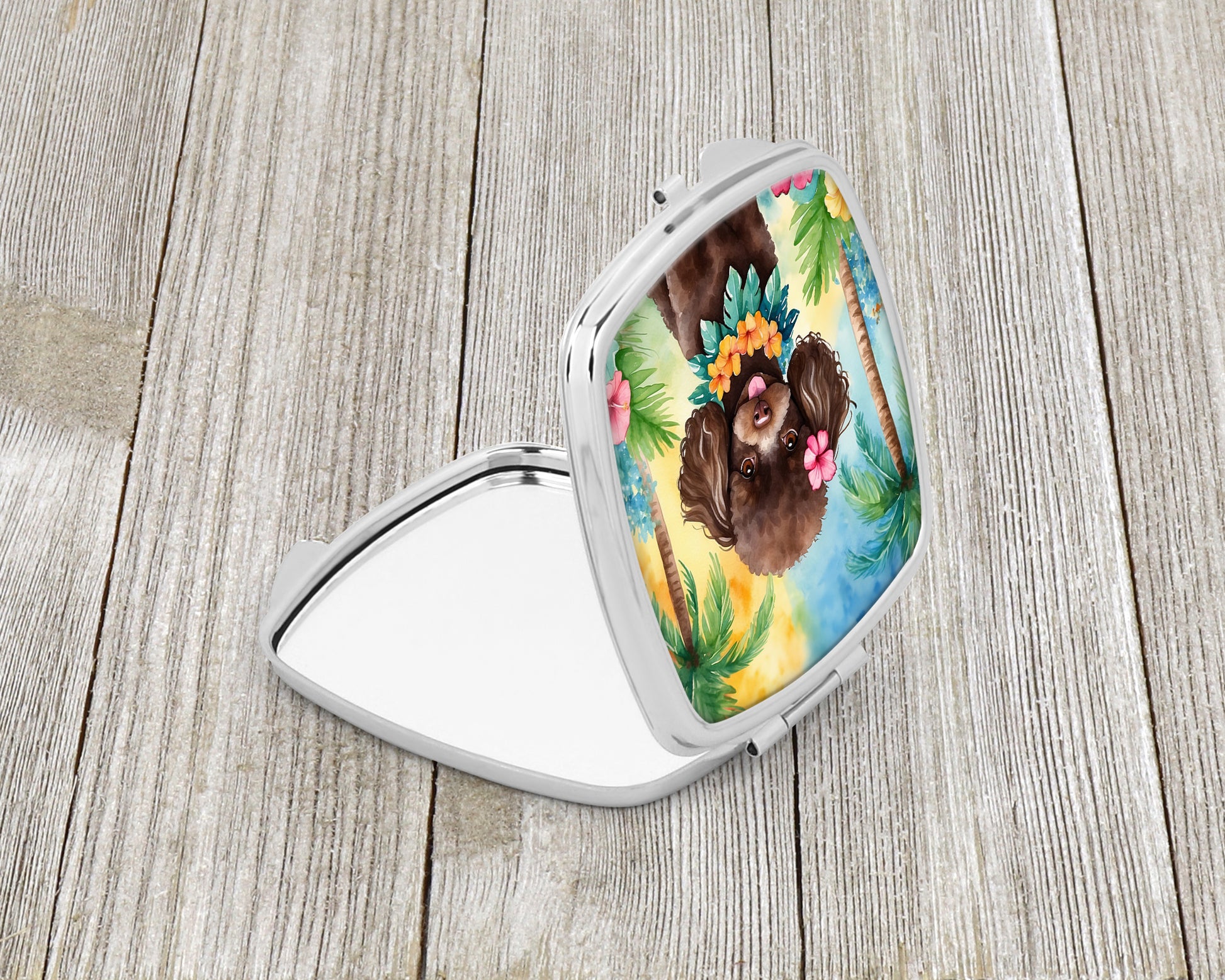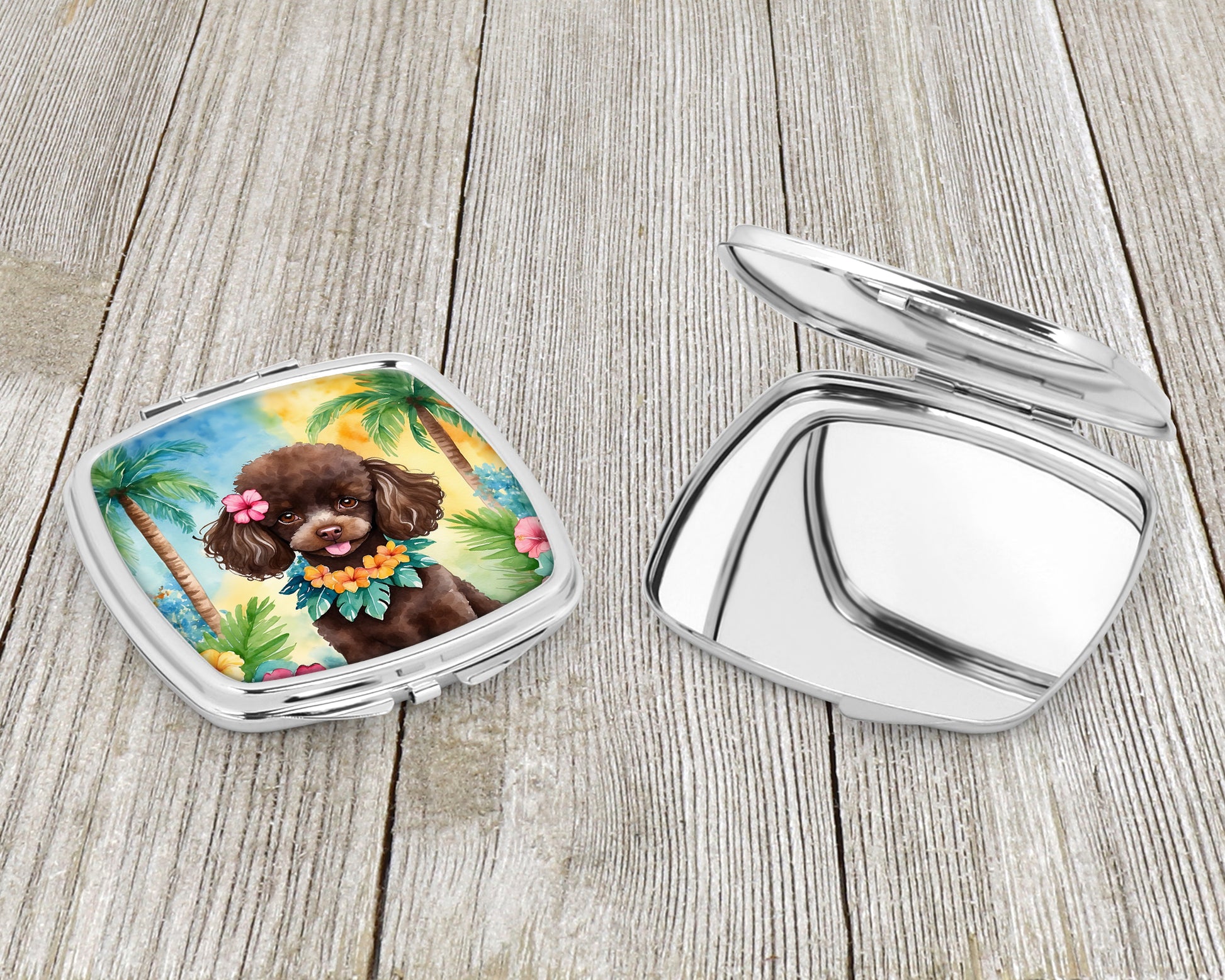 Compact Mirror featuring breed specific Poodle artwork. Introducing our Square Compact Mirror, a blend of elegance, functionality, and compactness, perfect for on-the-go touch-ups. This Silvertone metal mirror, with dimensions of 2.75 inches x 3 inches x .3 inches, fits effortlessly into your purse, handbag, or pocket, ensuring that you can check your appearance anytime, anywhere. Our compact mirror stands out with its eye-catching artwork on the front, adding a dash of style to this practical accessory. It is more than just a mirror; it's a statement piece that reflects your personality and aesthetic. When opened, this compact reveals two mirrors inside, doubling your perspective for precise touch-ups. The Silvertone metal construction ensures durability while maintaining a lightweight feel, making it an ideal everyday carry item. Whether you're rushing to a meeting, prepping for a dinner date, or just need a quick check on your look, our Square Compact Mirror is your reliable companion. Experience the perfect blend of style and practicality with this must-have accessory.