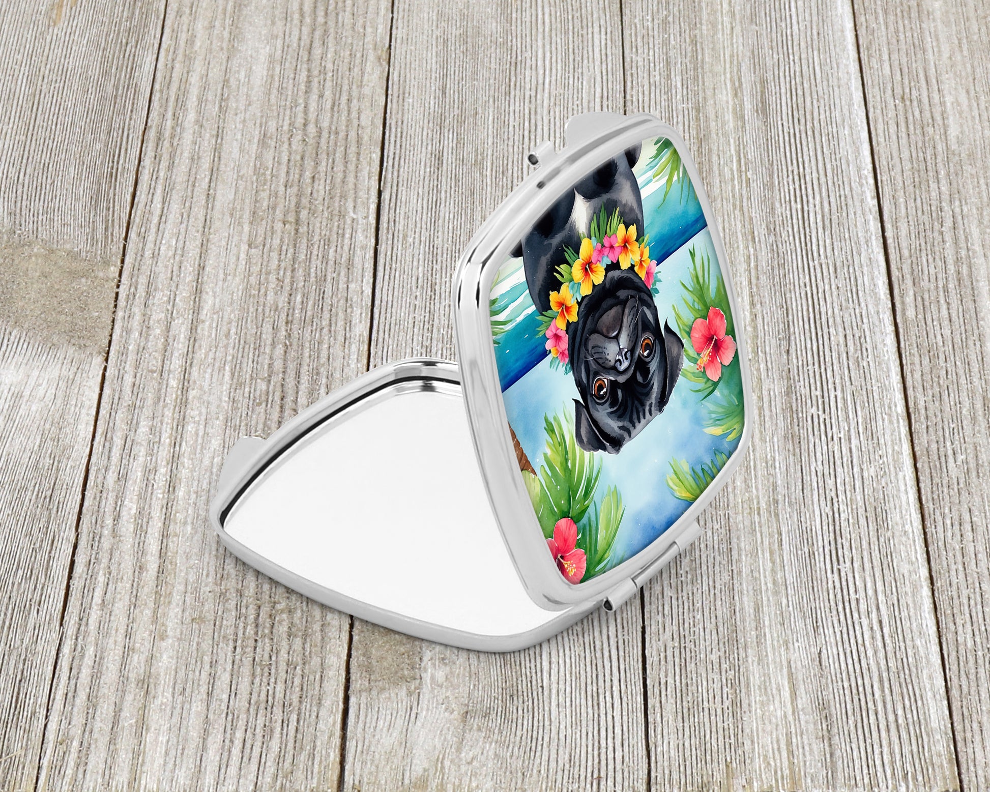 Compact Mirror featuring breed specific Pug artwork. Introducing our Square Compact Mirror, a blend of elegance, functionality, and compactness, perfect for on-the-go touch-ups. This Silvertone metal mirror, with dimensions of 2.75 inches x 3 inches x .3 inches, fits effortlessly into your purse, handbag, or pocket, ensuring that you can check your appearance anytime, anywhere. Our compact mirror stands out with its eye-catching artwork on the front, adding a dash of style to this practical accessory. It is more than just a mirror; it's a statement piece that reflects your personality and aesthetic. When opened, this compact reveals two mirrors inside, doubling your perspective for precise touch-ups. The Silvertone metal construction ensures durability while maintaining a lightweight feel, making it an ideal everyday carry item. Whether you're rushing to a meeting, prepping for a dinner date, or just need a quick check on your look, our Square Compact Mirror is your reliable companion. Experience the perfect blend of style and practicality with this must-have accessory.