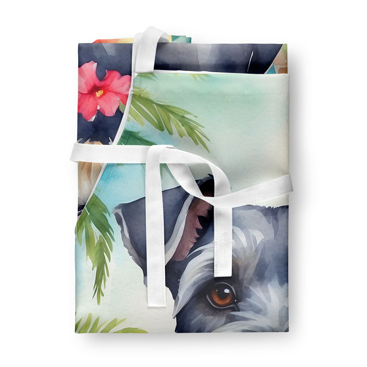 Apron featuring breed specific Schnauzer artwork. Elevate your cooking, baking, and grilling experiences with our versatile Kitchen or BBQ Apron. This Bib Style apron isn't just limited to culinary activities - it also serves as an excellent baking apron, artist apron, server apron, gardening apron, or even a dog grooming apron. The apron showcases vibrant full-color artwork contributed by one of our talented artists, bringing a dash of style to your daily tasks. With dimensions of approximately 27"W x 30"H, it provides ample coverage to protect your clothing from spills and splashes. Our apron is meticulously crafted from 100% Ultra Spun Polyester, known for its durability and lightweight nature. The apron comes with white tie straps, ensuring a comfortable and adjustable fit for all. It's a perfect choice for kitchen apron enthusiasts, whether you are a woman or a man. Designed for easy maintenance, this apron is fully machine washable. The quick-drying polyester material actively reduces staining, keeping your apron looking fresh and new for longer. Our beautifully designed apron isn't just a functional kitchen accessory - it's a fashion statement in the culinary world!