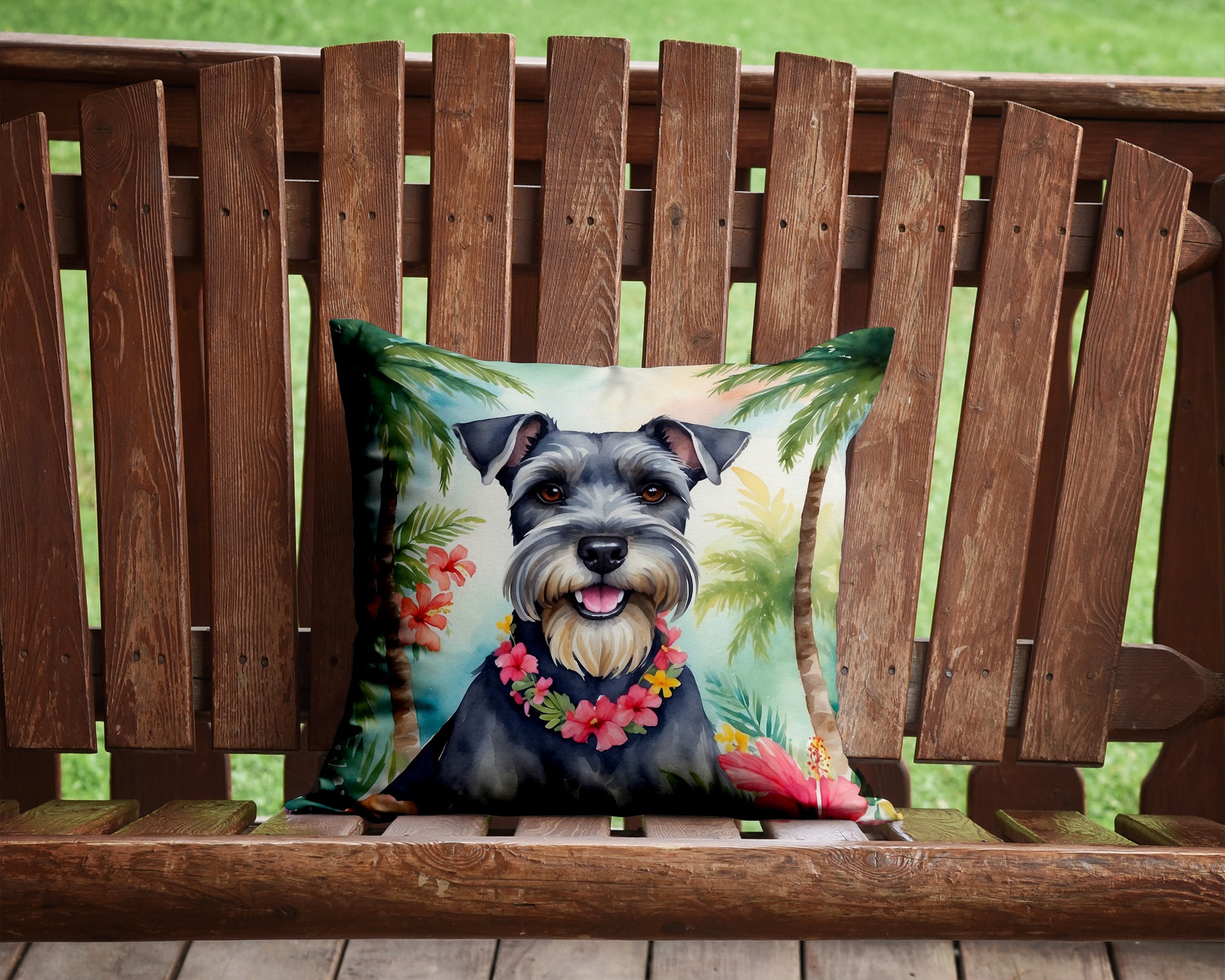Throw Pillow featuring breed specific Schnauzer artwork. Add a touch of vibrancy and comfort to your outdoor seating with Caroline's Treasures Fabric Decorative Pillow. Measuring approximately 14 inches by 14 inches, this outdoor pillow is crafted to elevate the appeal of your patio furniture, infusing it with vivid color and artistic flair. The pillow includes a 100% Polyester Fabric sham filled with a quality pillow form to provide superior comfort. Innovatively made from our brand new material, specifically woven for its water resistance, this pillow is designed for durability. The soft canvas fabric offers versatility in use, fit for your indoor couch or your outdoor patio, porch, or veranda. The fabric is dyed with colorfast dyes built for resilience against weather conditions, ensuring the pillow retains its beauty over time. Constructed by sewing three fabric pieces to create a sham, the polyester insert is then nestled inside to form the pillow, resulting in an overstuffed pillow that maintains its shape. Both the sham and the pillow insert are proudly made in the United States. As the pillows are handcrafted, there may be minor variations in size, further enhancing their unique charm. Experience comfort in style with Caroline's Treasures Fabric Decorative Pillow.