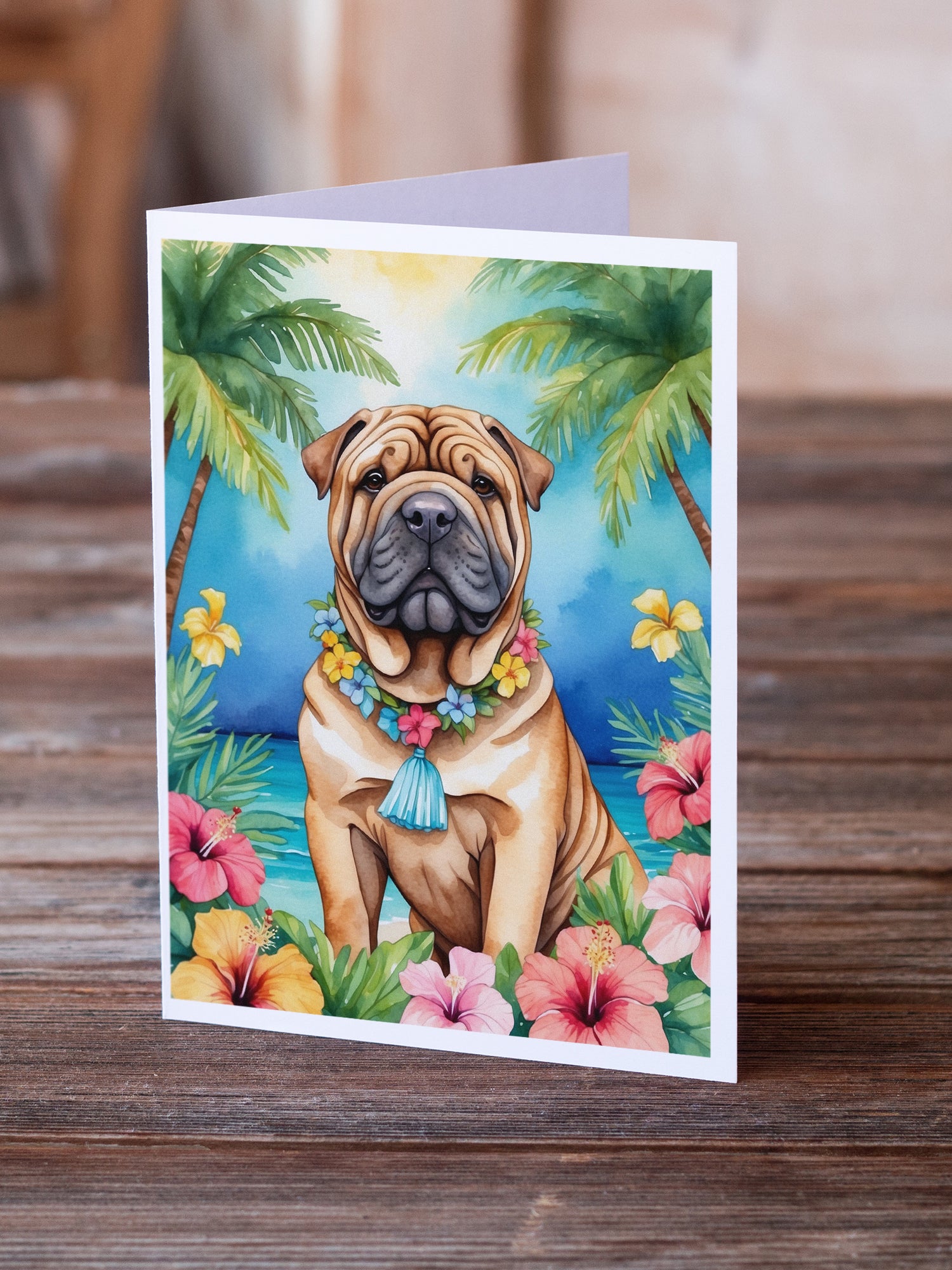 Shar Pei Luau Greeting Cards Pack of 8
