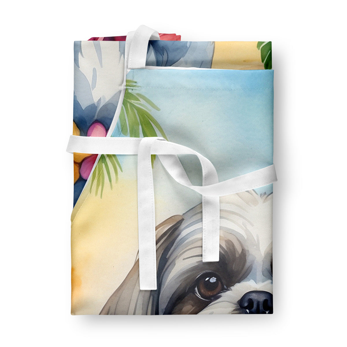 Apron featuring breed specific Shih Tzu artwork. Elevate your cooking, baking, and grilling experiences with our versatile Kitchen or BBQ Apron. This Bib Style apron isn't just limited to culinary activities - it also serves as an excellent baking apron, artist apron, server apron, gardening apron, or even a dog grooming apron. The apron showcases vibrant full-color artwork contributed by one of our talented artists, bringing a dash of style to your daily tasks. With dimensions of approximately 27"W x 30"H, it provides ample coverage to protect your clothing from spills and splashes. Our apron is meticulously crafted from 100% Ultra Spun Polyester, known for its durability and lightweight nature. The apron comes with white tie straps, ensuring a comfortable and adjustable fit for all. It's a perfect choice for kitchen apron enthusiasts, whether you are a woman or a man. Designed for easy maintenance, this apron is fully machine washable. The quick-drying polyester material actively reduces staining, keeping your apron looking fresh and new for longer. Our beautifully designed apron isn't just a functional kitchen accessory - it's a fashion statement in the culinary world!