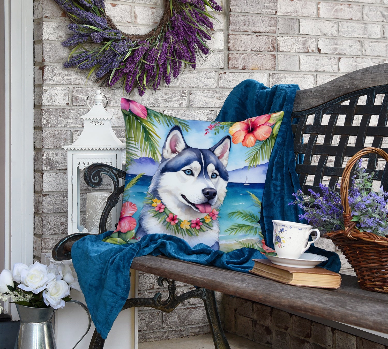 Throw Pillow featuring breed specific Siberian Husky artwork. Revitalize your outdoor or indoor living space with Caroline's Treasures 18x18 Fabric Decorative Pillow. With a generously sized dimension of approximately 18 inches by 18 inches, this pillow makes a comfortable and aesthetic addition to any seating area. Made from a unique, water-resistant material developed by Caroline's Treasures, the pillow sham is 100% polyester fabric that's durable and ready to weather any condition. Its vibrant, full-color artwork will not fade over time as it is dyed with color-fast dyes. Whether you place it on your patio furniture, porch, veranda, or indoor couch, its soft canvas fabric ensures a cozy experience. The pillow is handcrafted in the United States, featuring a sham created from three pieces of fabric and a polyester insert for enduring shape and overstuffed comfort. Despite being robustly built to endure the outdoors, it is as soft and snug as your favorite indoor cushions. Please note, as all our pillows are handmade, sizes may vary slightly, adding to the charm of this unique decorative item.