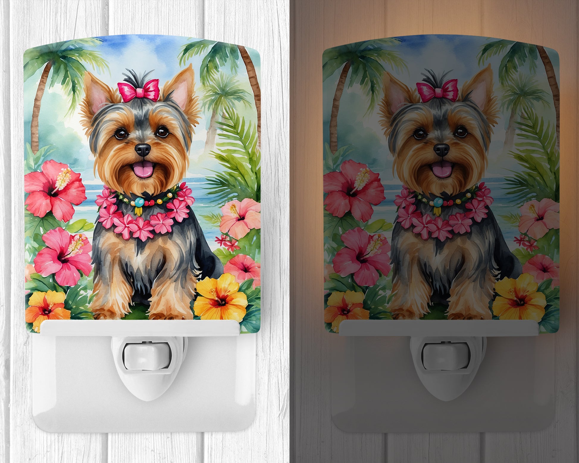 Ceramic Night Light featuring breed specific Yorkshire Terrier artwork. Introduce a splash of artistic flair and subtle illumination to your space with the Decorative Ceramic Night Light from Caroline's Treasures. Perfect for any room, this night light seamlessly blends functionality with an aesthetic appeal, offering a stylish solution to brighten up dark corners of your home or office. Boasting a six-inch high by four-inch wide ceramic tile at the front, it showcases vivid, full-color artwork from distinguished artists, transforming a simple utility into a vibrant art piece. The artwork is securely encased in a robust metal holder, ensuring durability and longevity. Two screws are provided to firmly affix the tile into the holder. The holder extends three inches deep, housing an included bulb that emits a soft, welcoming glow. This product meets all safety standards, as evidenced by its UL approval. Proudly made in the United States from imported components, this Decorative Ceramic Night Light is not just a functional device; it's a statement piece that enhances the ambiance of your surroundings.