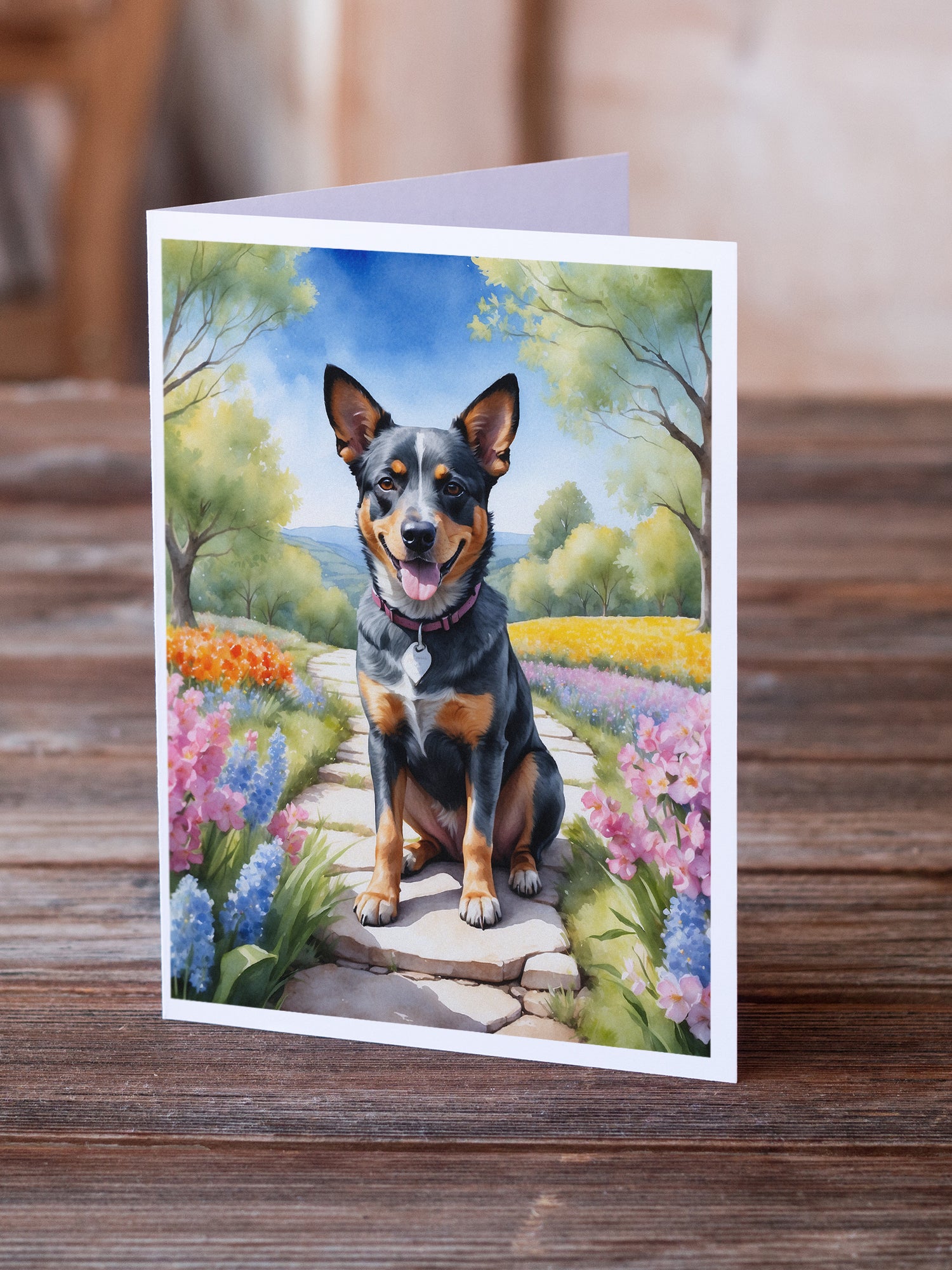 Australian Cattle Dog Spring Garden Greeting Cards Pack of 8