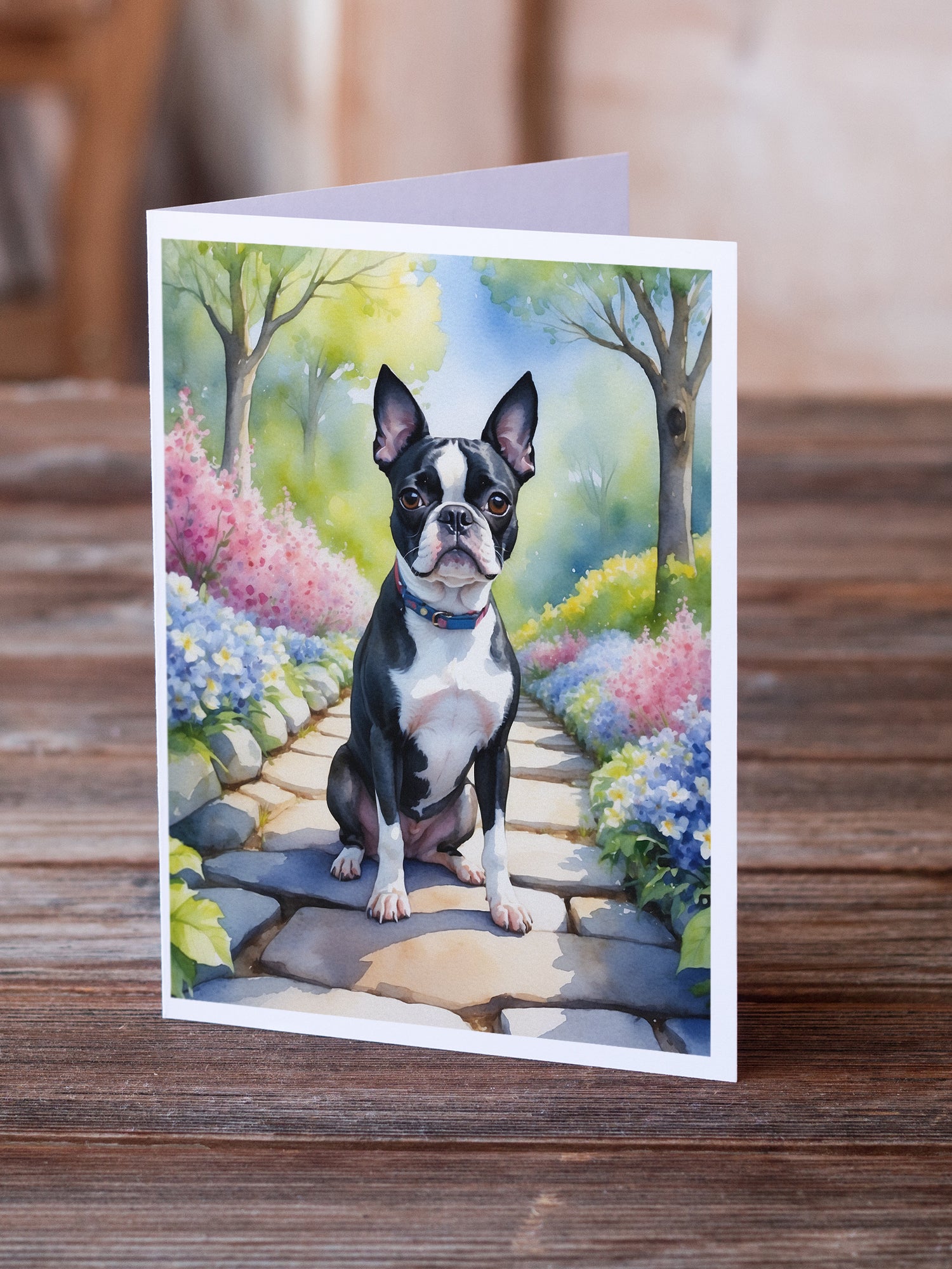 Boston Terrier Spring Path Greeting Cards Pack of 8