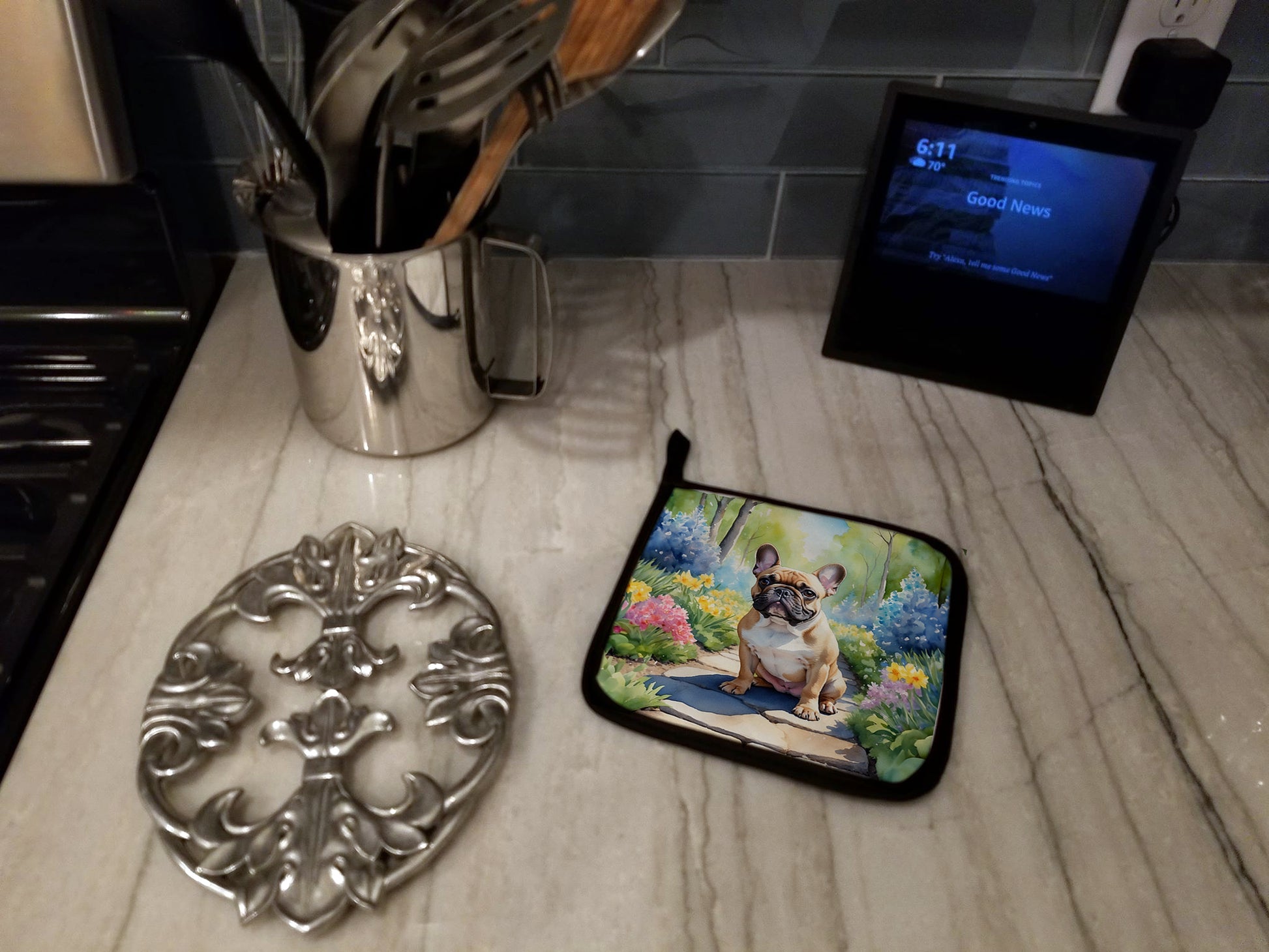French Bulldog Spring Path Pair of Pot Holders