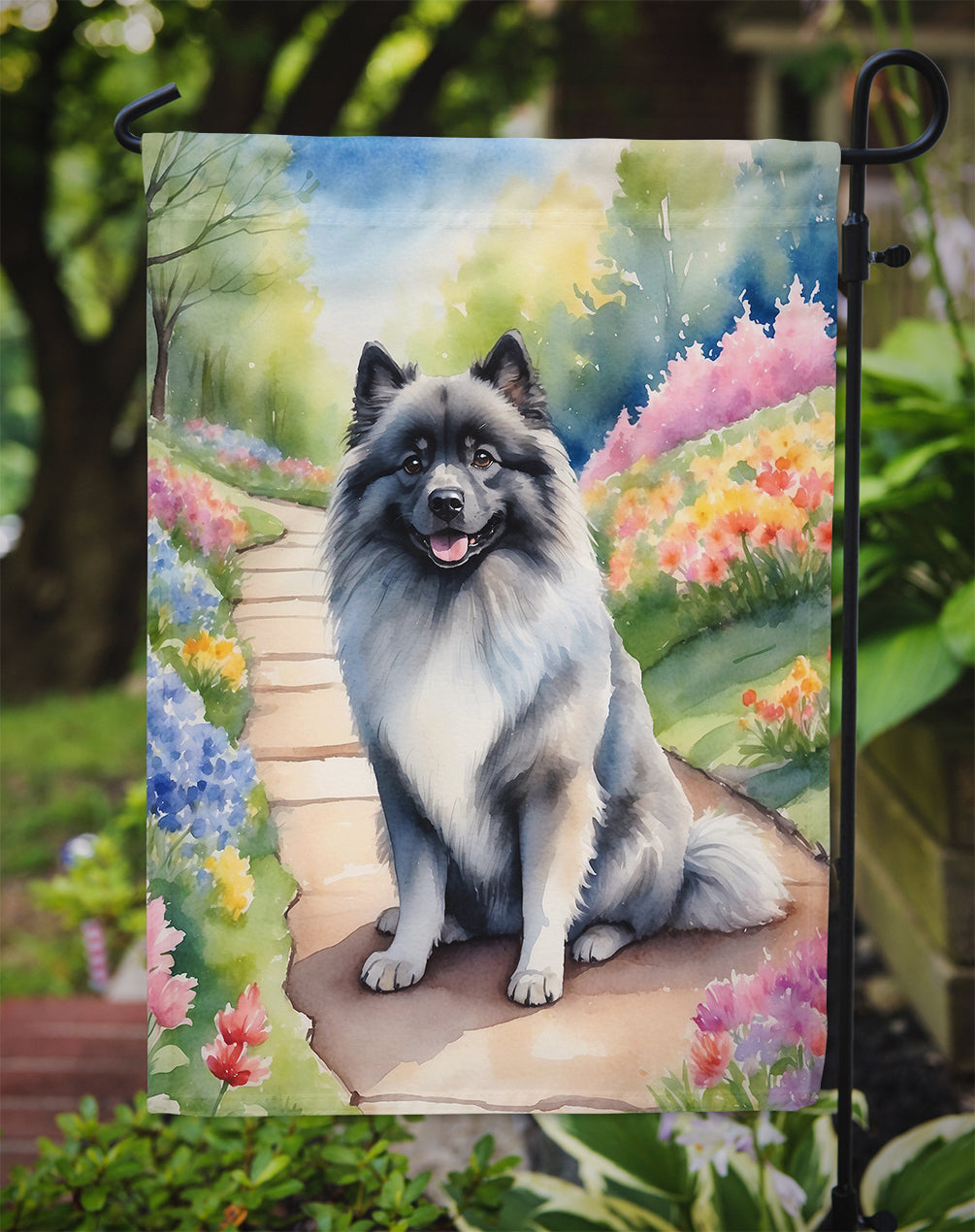Keeshond Spring Path Garden Flag
