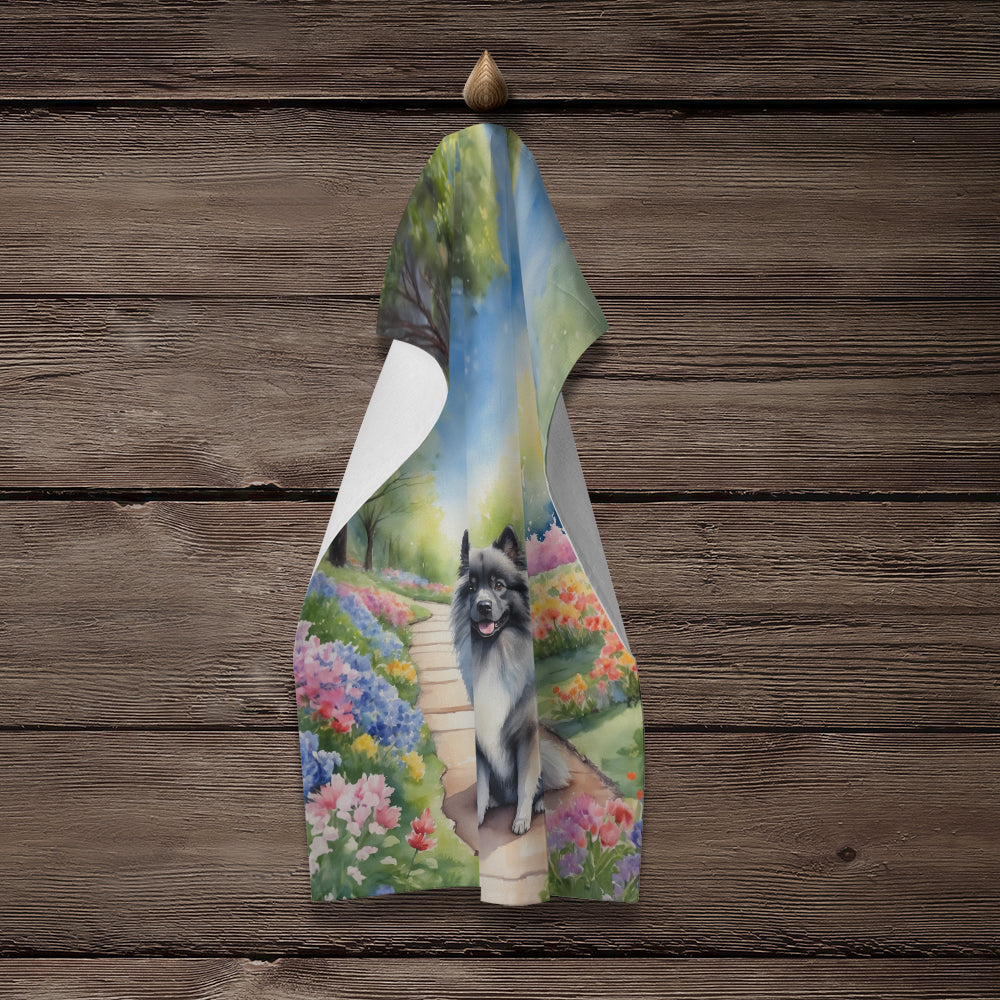 Kitchen Towel featuring breed specific Keeshond artwork. Experience the perfect blend of aesthetic appeal and functional excellence with our Plush Velour Kitchen Towels. These are not your ordinary decorative kitchen towels that gather dust. Instead, they are designed to be as practical as they are stylish. The front layer of our towel is constructed from a minky plush polyester, known for its durability and color retention. Unlike conventional kitchen towels, the artwork on our towels is dyed directly into the fabric, ensuring vibrant colors that last. Polish your glassware to a brilliant sparkle using the plush front side of the towel. Flip to the back, crafted from 100% cotton terry loop, to exploit its exceptional absorbency for drying dishes or wiping down counters. Our kitchen towels redefine the concept of functional art, offering lasting quality that maintains the towel's shape over time. Measuring 15 inches by 25 inches and weighing 2.3 lbs per dozen, these towels deliver an overwhelming sensory experience with their soft, plush, and smooth texture. The edges are meticulously finished with binding, enhancing their durability and visual appeal. For your convenience, these towels are machine washable and can be dried on low heat. After the first wash, the top fabric becomes even softer and fluffier, eliminating the need for ironing. Treat your kitchen to the luxury and functionality it deserves with our plush velour kitchen towels.