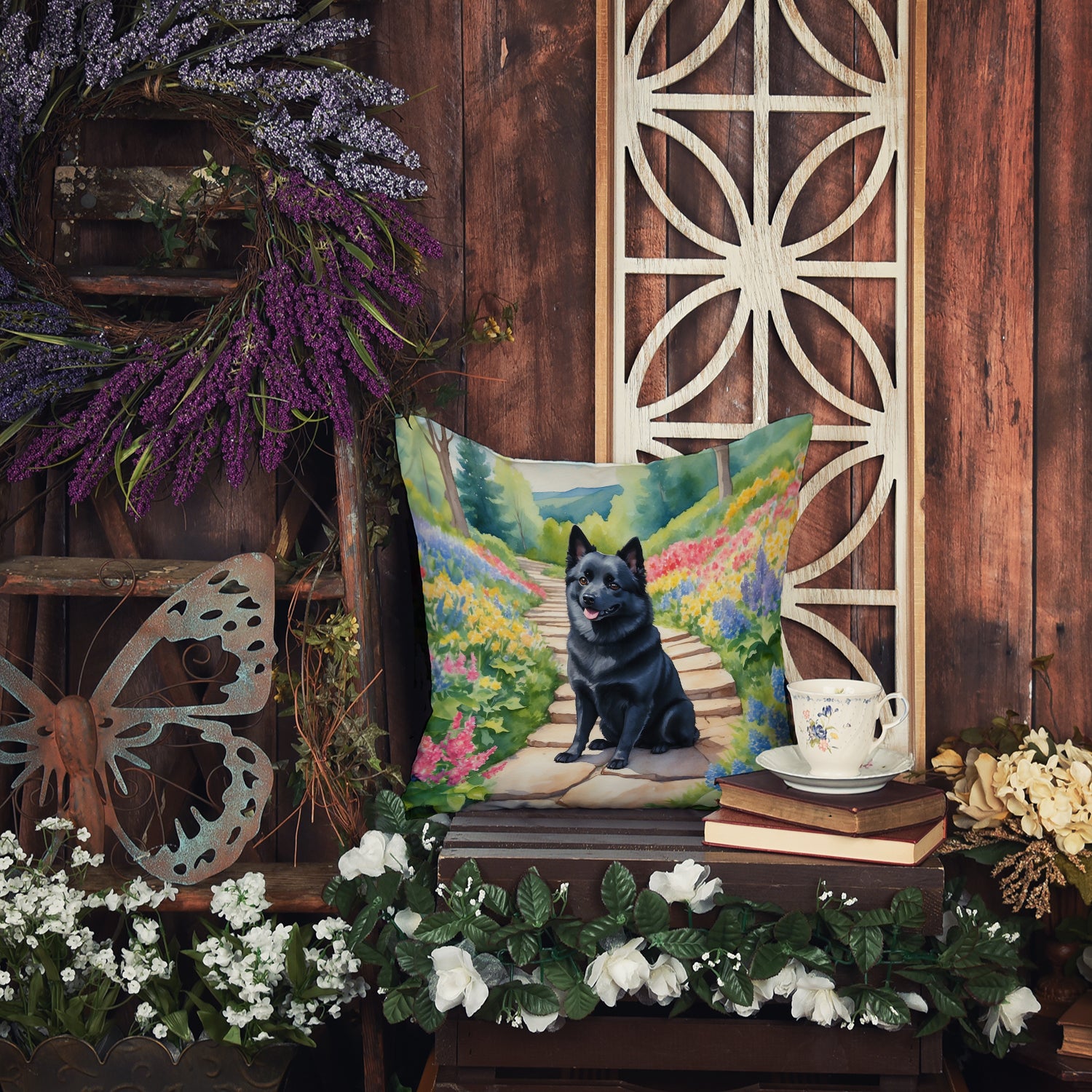 Throw Pillow featuring breed specific Schipperke artwork. Revitalize your outdoor or indoor living space with Caroline's Treasures 18x18 Fabric Decorative Pillow. With a generously sized dimension of approximately 18 inches by 18 inches, this pillow makes a comfortable and aesthetic addition to any seating area. Made from a unique, water-resistant material developed by Caroline's Treasures, the pillow sham is 100% polyester fabric that's durable and ready to weather any condition. Its vibrant, full-color artwork will not fade over time as it is dyed with color-fast dyes. Whether you place it on your patio furniture, porch, veranda, or indoor couch, its soft canvas fabric ensures a cozy experience. The pillow is handcrafted in the United States, featuring a sham created from three pieces of fabric and a polyester insert for enduring shape and overstuffed comfort. Despite being robustly built to endure the outdoors, it is as soft and snug as your favorite indoor cushions. Please note, as all our pillows are handmade, sizes may vary slightly, adding to the charm of this unique decorative item.