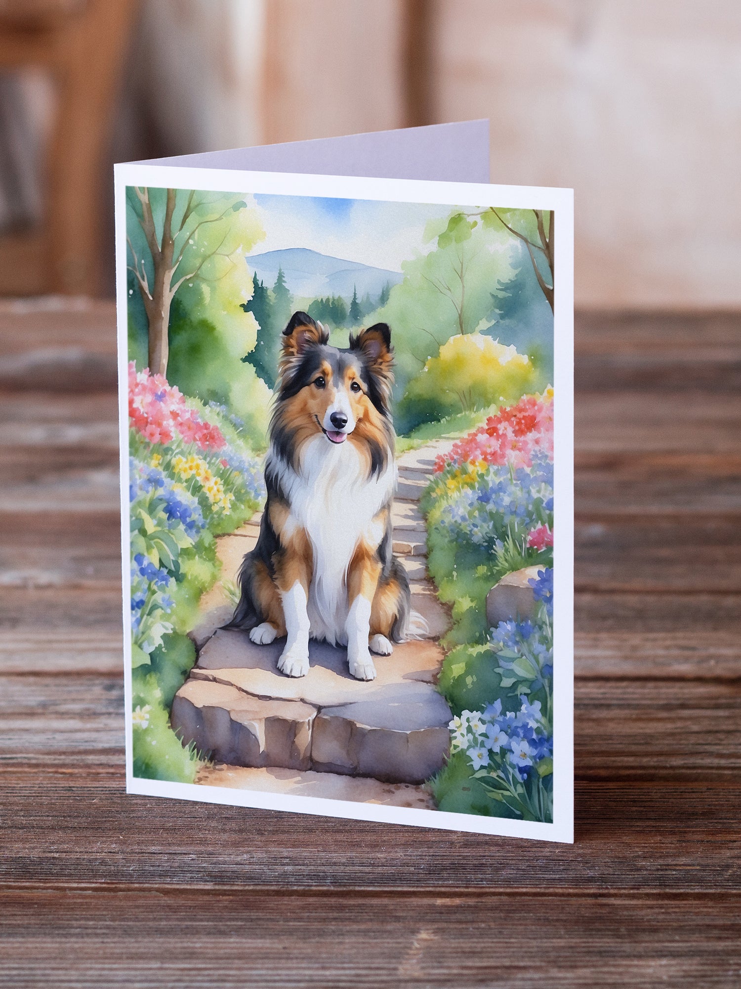 Sheltie Spring Path Greeting Cards Pack of 8