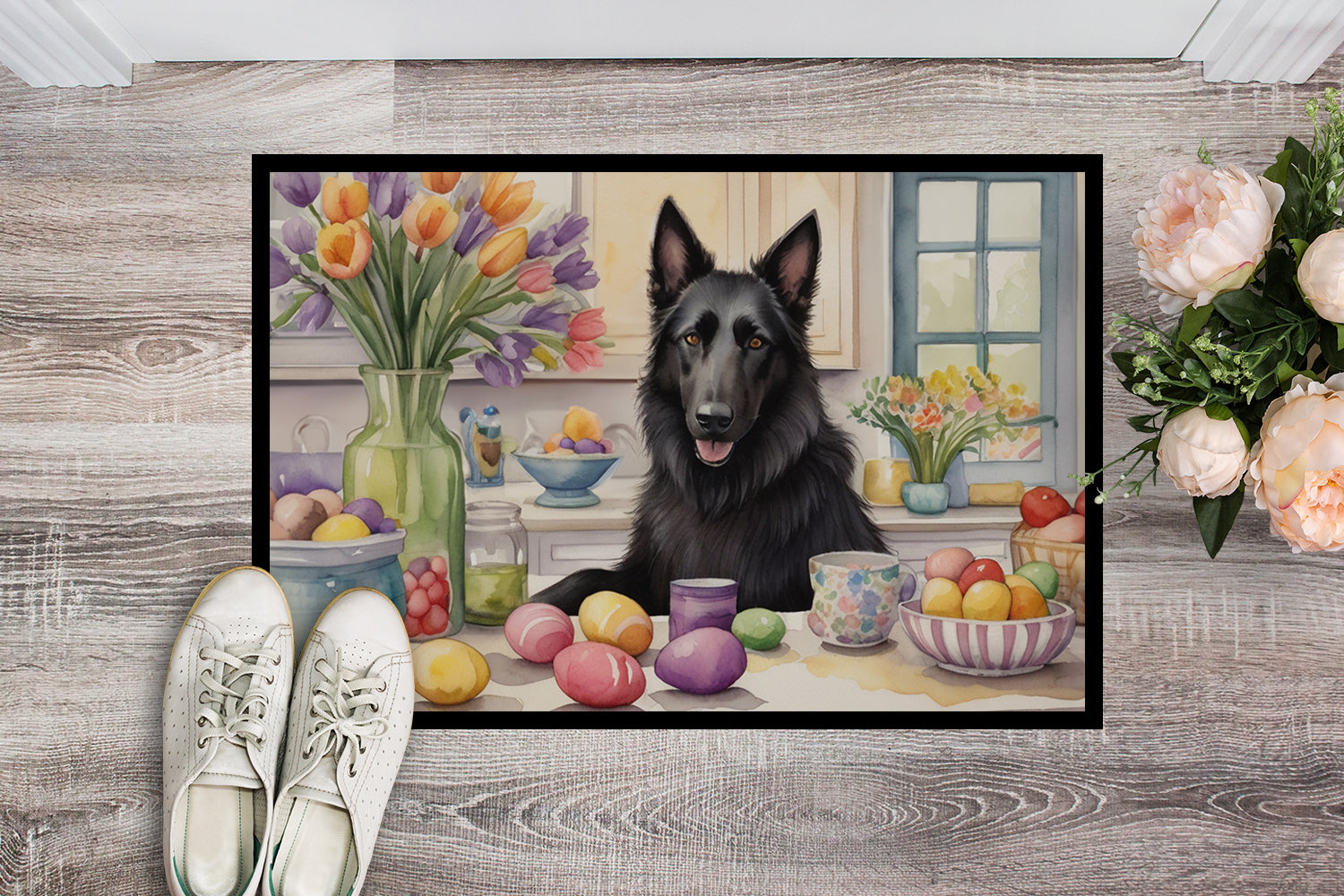 Decorating Easter Belgian Sheepdog Doormat