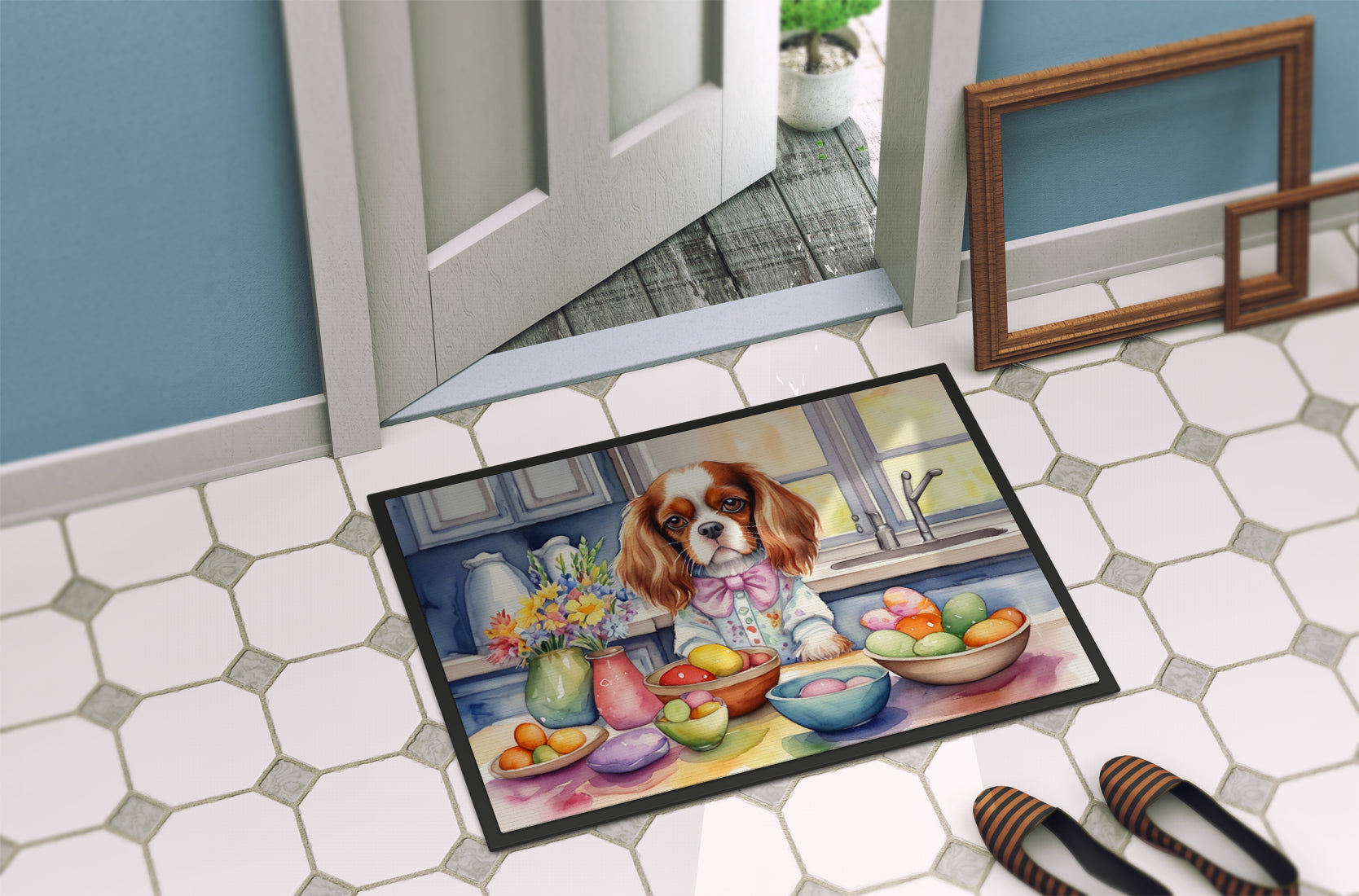 Decorating Easter Cavalier Spaniel Doormat
