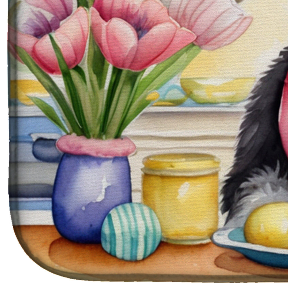 Decorating Easter Schnauzer Dish Drying Mat