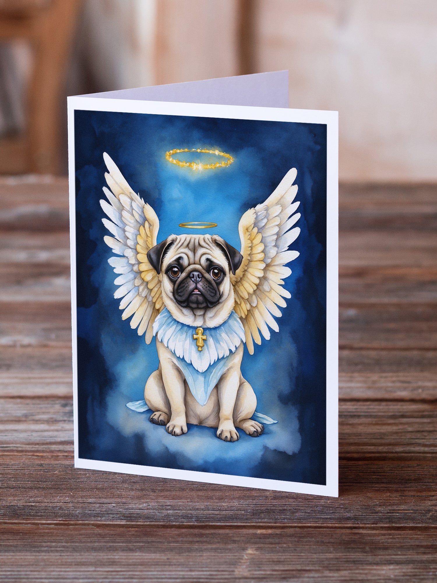 Greeting Cards Pack of 8 featuring breed specific Pug artwork. Celebrate Christmas with this Christmas . Celebrate special moments with Caroline's Treasures Printed Greeting Card Pack. This pack includes eight beautifully folded 5x7 cards, accompanied by eight matching white envelopes. With blank interiors, these cards provide ample space for your personalized messages and heartfelt holiday greetings. Each card features captivating full-color artwork, meticulously printed in our facility on high-quality 80 lb cover stock or 216 GSM. The super smooth finish of the white cards enhances the visual impact of the artwork, creating a truly stunning presentation. Designed by our talented in-house artists or licensed artists, the artwork on these cards showcases their creativity and attention to detail. From vibrant illustrations to captivating designs, each card tells its own unique story. Whether it's for birthdays, anniversaries, holidays, or any special occasion, Caroline's Treasures Greeting Card Pack is the perfect way to convey your heartfelt sentiments. Share joy, love, and warm wishes with these exquisite cards and make every moment unforgettable.