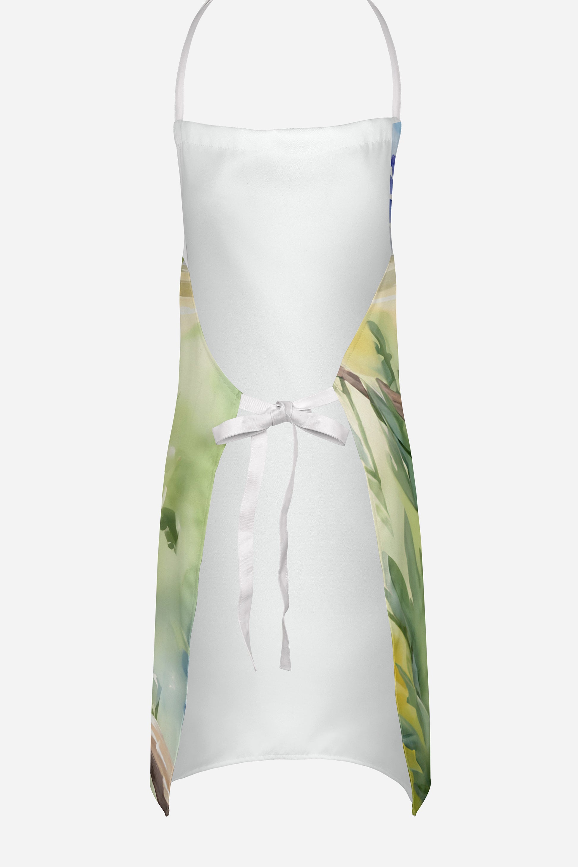 Apron featuring breed specific Lark Bunting artwork. Elevate your cooking, baking, and grilling experiences with our versatile Kitchen or BBQ Apron. This Bib Style apron isn't just limited to culinary activities - it also serves as an excellent baking apron, artist apron, server apron, gardening apron, or even a dog grooming apron. The apron showcases vibrant full-color artwork contributed by one of our talented artists, bringing a dash of style to your daily tasks. With dimensions of approximately 27"W x 30"H, it provides ample coverage to protect your clothing from spills and splashes. Our apron is meticulously crafted from 100% Ultra Spun Polyester, known for its durability and lightweight nature. The apron comes with white tie straps, ensuring a comfortable and adjustable fit for all. It's a perfect choice for kitchen apron enthusiasts, whether you are a woman or a man. Designed for easy maintenance, this apron is fully machine washable. The quick-drying polyester material actively reduces staining, keeping your apron looking fresh and new for longer. Our beautifully designed apron isn't just a functional kitchen accessory - it's a fashion statement in the culinary world!