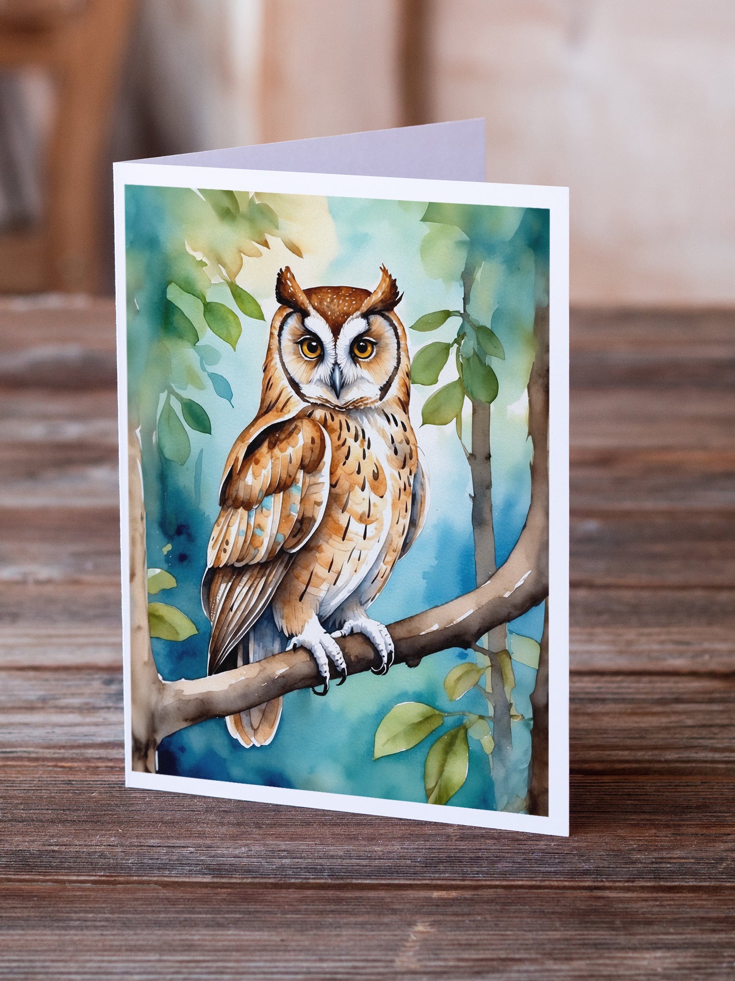 Greeting Cards Pack of 8 featuring breed specific Oriental Bay Owl artwork. Celebrate special moments with Caroline's Treasures Printed Greeting Card Pack. This pack includes eight beautifully folded 5x7 cards, accompanied by eight matching white envelopes. With blank interiors, these cards provide ample space for your personalized messages and heartfelt holiday greetings. Each card features captivating full-color artwork, meticulously printed in our facility on high-quality 80 lb cover stock or 216 GSM. The super smooth finish of the white cards enhances the visual impact of the artwork, creating a truly stunning presentation. Designed by our talented in-house artists or licensed artists, the artwork on these cards showcases their creativity and attention to detail. From vibrant illustrations to captivating designs, each card tells its own unique story. Whether it's for birthdays, anniversaries, holidays, or any special occasion, Caroline's Treasures Greeting Card Pack is the perfect way to convey your heartfelt sentiments. Share joy, love, and warm wishes with these exquisite cards and make every moment unforgettable.